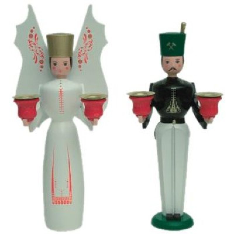 Damit dein Schwibbogen am Fenster richtig zur Geltung kommt! Dieses bezaubernde 2er Set aus dem Erzgebirge mit den klassischen Motiven Engel und Bergmann ist die perfekte Lösung. Aus hochwertigem Holz gefertigt und in beiger Farbe lackiert, passen sie perfekt zu jedem traditionellen Weihnachtsschmuck. Mit den Maßen 11x12x8cm sind sie ideal, um deinen Lichterbogen anzuheben und ihn so noch besser in Szene zu setzen. Die dekorative Gestaltung ist typisch erzgebirgisch und bringt diesen besonderen Charme direkt in dein Zuhause. Hergestellt in eigener Produktion - da weiß man, was man hat! Einfach den Schwibbogen auf die Erhöhungen stellen und schon wirkt die gesamte Weihnachtsdekoration gleich viel professioneller. Ob im Wohnzimmerfenster, auf der Kommode oder als Teil einer größeren Weihnachtslandschaft - diese Erhöhungen machen einfach alles mit. Ein Muss für alle Liebhaber erzgebirgischer Volkskunst und die, die es noch werden wollen! Einfach aufstellen und dich an der gemütlichen Weihnachtsstimmung erfreuen.