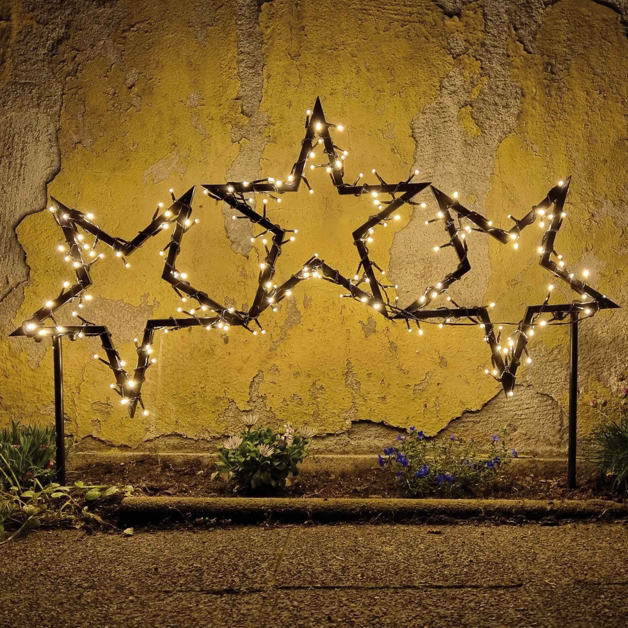 Esotec Solar LED Weihnachtssterne 2er Set - 30+40cm Metall Sterne Für Außendeko