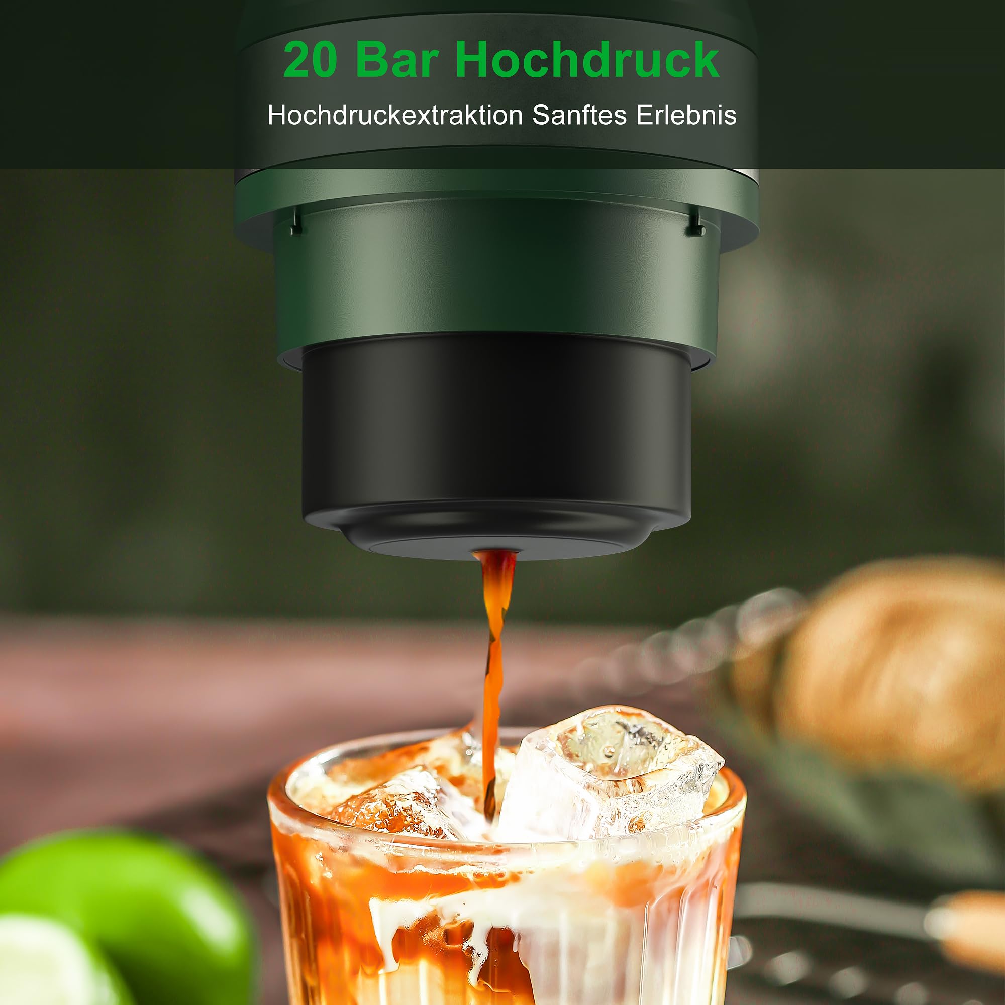 Kaffee-Liebhaber aufgepasst! Diese tragbare Espressomaschine ist dein neuer bester Freund für unterwegs. Mit 20 Bar Druck zauberst du überall perfekten Espresso mit dicker Crema - ob mit gemahlenem Kaffee oder NS-Kapseln. Der integrierte 7500-mAh-Akku hält ewig und lädt einfach per USB-C auf. Bis zu 8 Tassen heißen Kaffee kannst du damit brühen! Das coole LED-Display zeigt dir immer den Akkustand und die Temperatur an. Der 80-ml-Wassertank ist perfekt für Single oder Double Shots portioniert. Super kompakt, passt in jede Reisetasche und macht dich unabhängig von Steckdosen. Egal ob beim Camping, im Büro oder einfach zu Hause - guten Kaffee gibt's jetzt immer und überall. Einfach einschalten, und in wenigen Minuten genießt du barista-würdigen Espresso. Dein Kaffee, deine Regeln - immer und überall!