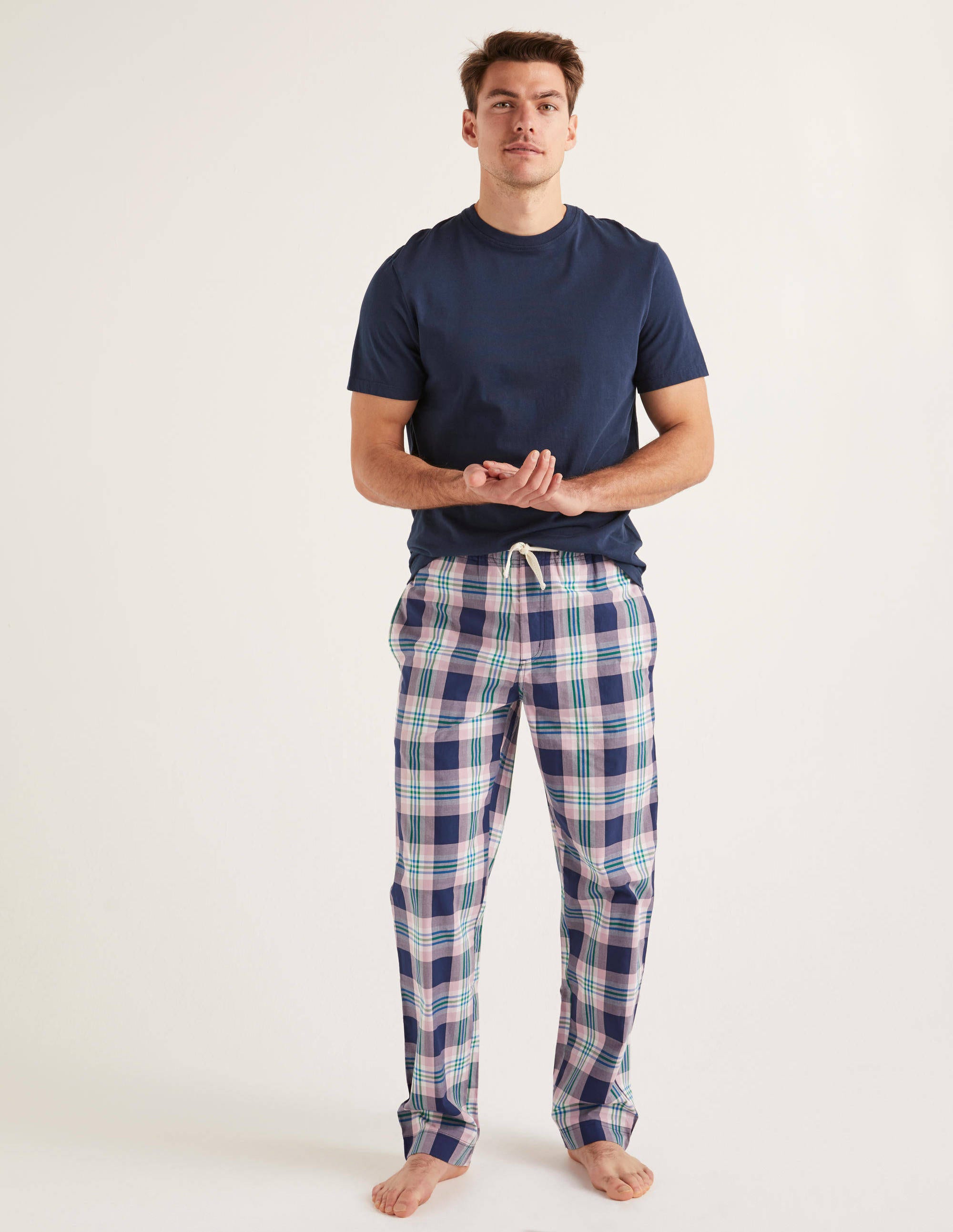 Zwei superbequeme Schlafanzughosen im Pack - perfekt für erholsame Nächte! Aus leichter Baumwollpopeline, die angenehm kühl und atmungsaktiv ist. Der lockere Schnitt sitzt easy an Hüfte, Oberschenkel und Bein - ohne einzuengen. Mit elastischem Bund und verstellbarem Kordelzug für den perfekten Sitz. Seitentaschen für deine Kleinigkeiten, Knopfleiste für einfaches An- und Ausziehen. Innenbeinlänge von 77,5cm bei Größe S - passt sich gut an. Weich, griffig und pflegeleicht - einfach waschen und tragen. Ideal für warme Sommernächte oder gemütliche Abende auf dem Sofa. Das 2er-Pack bedeutet: immer eine frische Hose parat. Einfach anziehen, entspannen und süß träumen. Für alle Herren, die Komfort lieben - ob jung oder alt. Hol dir diesen Basics-Pack für ultimativen Schlafkomfort!