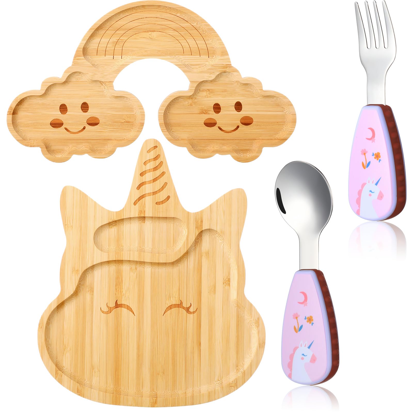 Apro Vision Kinder Essgeschirr Set Mit Zug-Motiv | Teller & Besteck Für Kleinkinder
