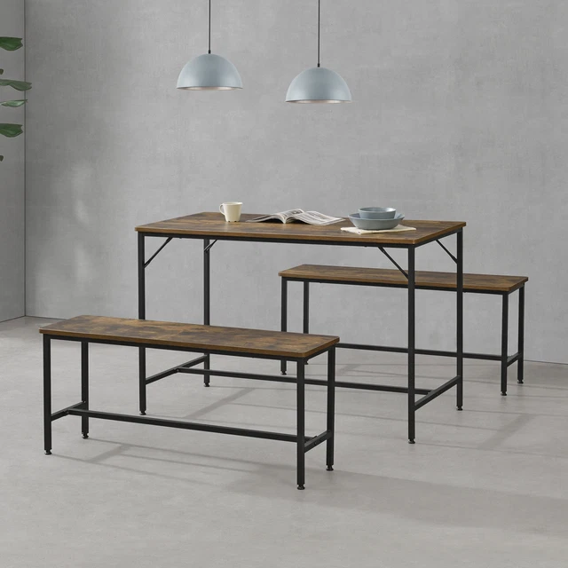 Perfekte Essgruppe für kleine Räume! Dieses 3-teilige Set besteht aus einem Tisch (118x78x75cm) und zwei Bänken (je 113x37x45cm). In schicker Sonoma-Eiche Optik mit melaminharzbeschichteter Oberfläche - kratzfest und pflegeleicht. Die Bänke lassen sich praktisch unter dem Tisch verstauen und halten bis zu 180kg aus. Einfacher Selbstaufbau mit bebilderter Anleitung. Ideal für Küche oder Esszimmer - schafft gemütliche Atmosphäre für Familienessen. Platz für bis zu 6 Personen!