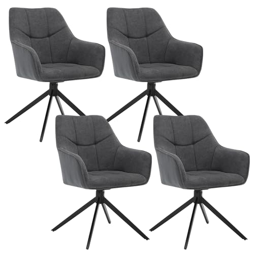 Style und Komfort für dein Esszimmer! Dieses elegante 6er-Set drehbarer Esszimmerstühle bringt modernes Flair in deine vier Wände. Jeder Stuhl verfügt über eine praktische 360-Grad-Drehfunktion, die müheloses Drehen in jede Richtung ermöglicht - super praktisch beim Essen oder für Gespräche. Die ergonomisch gestaltete Rückenlehne und die komfortablen Armlehnen bieten langfristige Unterstützung und entlasten Wirbelsäule und Arme. Aus robustem Karbonstahl gefertigt, trägt jeder Stuhl bis zu 150kg - absolute Stabilität garantiert! Die dämpfende Drehplatte sorgt für sanftes und geräuscharmes Drehen. Das hochwertige Kunstleder in Leinen-Optik sieht nicht nur edel aus, sondern ist auch pflegeleicht und langlebig. Perfekt für Esszimmer, Wohnzimmer, Büro oder Empfangsbereiche. Das dunkelgraue Design passt zu nahezu jedem Einrichtungsstil und verleiht jedem Raum eine Note von Luxus und Eleganz. Einfach aufbauen und sich an dem Komfort und der Funktionalität erfreuen! Ein Investment, das sich lohnt.