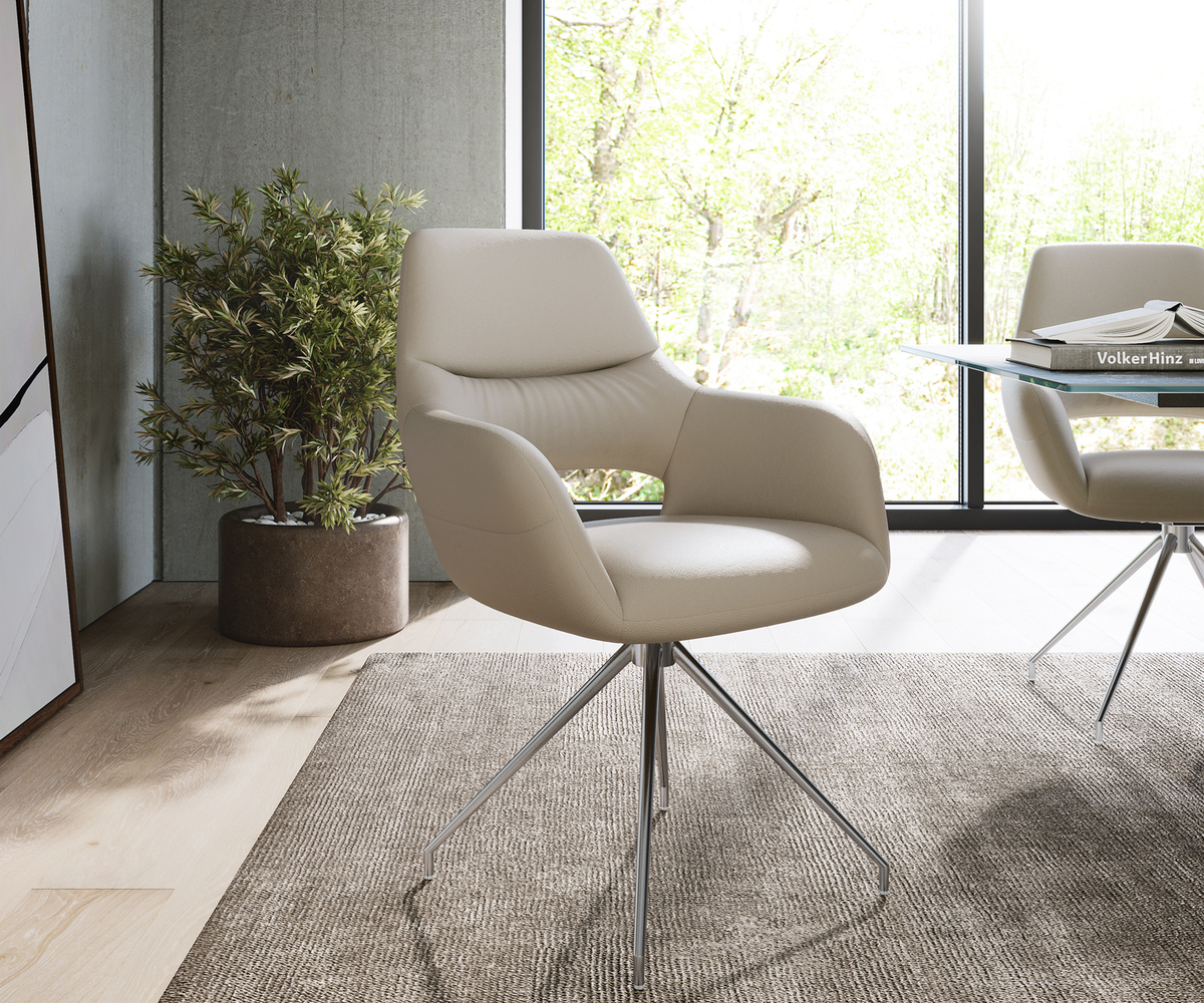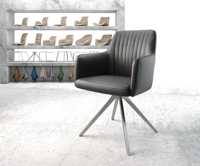 Wow, was für ein Sessel! Der DELIFE Alja-Flex kombiniert modernes Design mit mega Komfort. Die Sitzschale aus 100% Echtleder (Rindleder) fühlt sich super weich an und ist dabei extrem langlebig. Mit Taschenfederkern für optimale Punktelastizität - deine Wirbelsäule wird's dir danken! Das stabile Kreuzgestell aus gebürstetem Edelstahl sieht nicht nur edel aus, sondern ist auch rostfrei. Besonders cool: Die 360° Drehfunktion und die sanfte Wippbewegung machen das Sitzen zum Erlebnis. Maße: 61x65x91cm (BxTxH), Sitzhöhe 51cm - perfekt für Esstisch oder Schreibtisch. Hält bis 150kg aus und kommt teilmontiert - in wenigen Minuten aufgebaut. Die schlanken Armlehnen auf 65cm Höhe bieten zusätzlichen Komfort. Ob zum Essen, Arbeiten oder Entspannen - dieser Stuhl ist ein echter Hingucker und super bequem! Perfekt für alle, die Wert auf Style und Komfort legen.