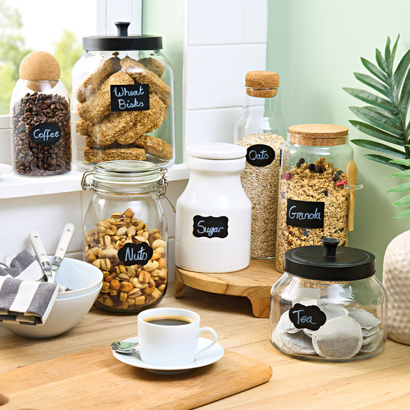 Weißt du auch nie mehr, was in deinen Einmachgläsern ist? Mit diesen süßen Kreidetafel-Etiketten ist Schluss damit! 168 Stück in verschiedenen Formen und Farben - da findest du für jedes Glas das passende Etikett. Einfach mit dem beiliegenden Kreidestift beschriften, abziehen und aufkleben. Und wenn sich der Inhalt ändert: einfach mit einem feuchten Tuch abwischen und neu beschriften! Spülmaschinenfest sind sie auch - also kein Problem beim Reinigen. Perfekt für Einmachgläser, Gewürzdosen, Vorratsbehälter... deine ganze Küche wird endlich organisiert! Die abnehmbaren Aufkleber hinterlassen keine klebrigen Rückstände. Mit dabei: 6 große Etikettenblätter, 2 weiße Kreidestifte und 2 Wischtücher. So macht Küche aufräumen Spaß!