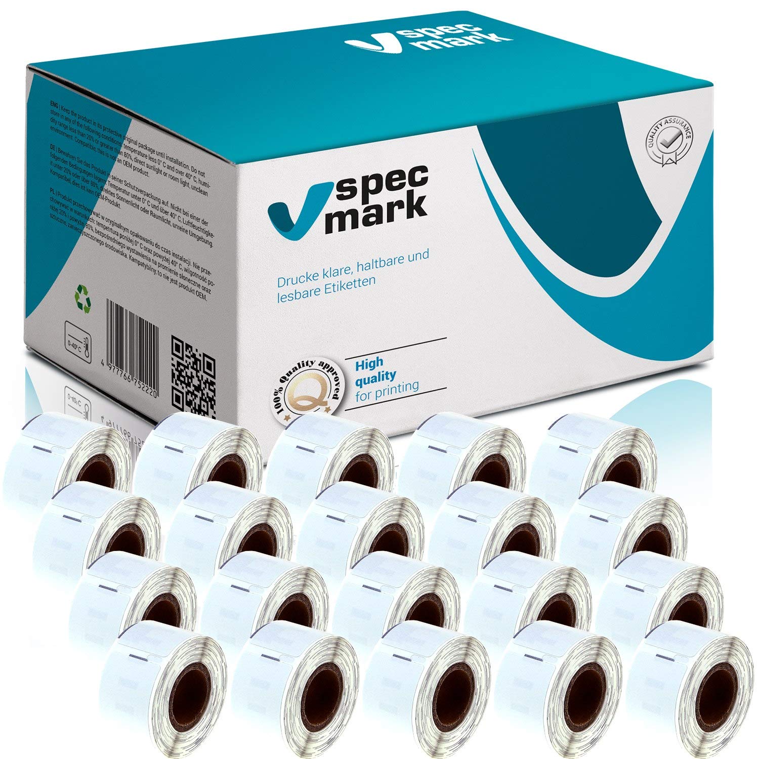 Immer die richtigen Etiketten zur Hand! Dieses Set mit 20 Rollen Adressetiketten ist perfekt für deinen DYMO LabelWriter. Jede Rolle hat 130 Etiketten in der Größe 28x89mm. Kompatibel mit LabelWriter 310, 320, 330, 400, 450, 4XL und vielen Seiko SLP Modellen. Das hochwertige Papier ist wasserfest, kratzfest und ölbeständig - ideal für Pakete, Briefe oder Ordner. Der starke Klebstoff hält sicher auf verschiedenen Oberflächen. Kristallklarer Druck für gut lesbare Adressen und Barcodes. BPA-frei und damit unbedenklich im Einsatz. Ob im Büro oder zu Hause - mit diesen Etiketten ist alles schnell und professionell beschriftet. Ein praktischer Vorrat, der lange hält!