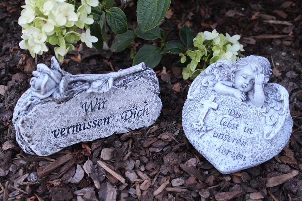Eine berührende Erinnerung für das liebevolle Gedenken. Diese Grabschmuck-Kugel von Goldbach mit der Aufschrift 'Wir vermissen Euch' ist ein wunderschönes Andenken für die letzte Ruhestätte. Mit den Maßen 9x9,5x10cm hat sie die perfekte Größe für jedes Grab. Hergestellt aus robustem Polyresin (Kunststein) ist sie absolut wetterfest und frostsicher - hält also auch den härtesten Winter problemlos aus. In dezentem Steingrau passt sie zu jeder Grabgestaltung. Neben der berührenden Aufschrift zieren auch betende Hände nach Dürer und zarte Rosen die Kugel. Ein stilvoller und langlebiger Grabschmuck, der deine Verbundenheit ausdrückt. Einfach aufstellen und für immer in guter Erinnerung behalten.