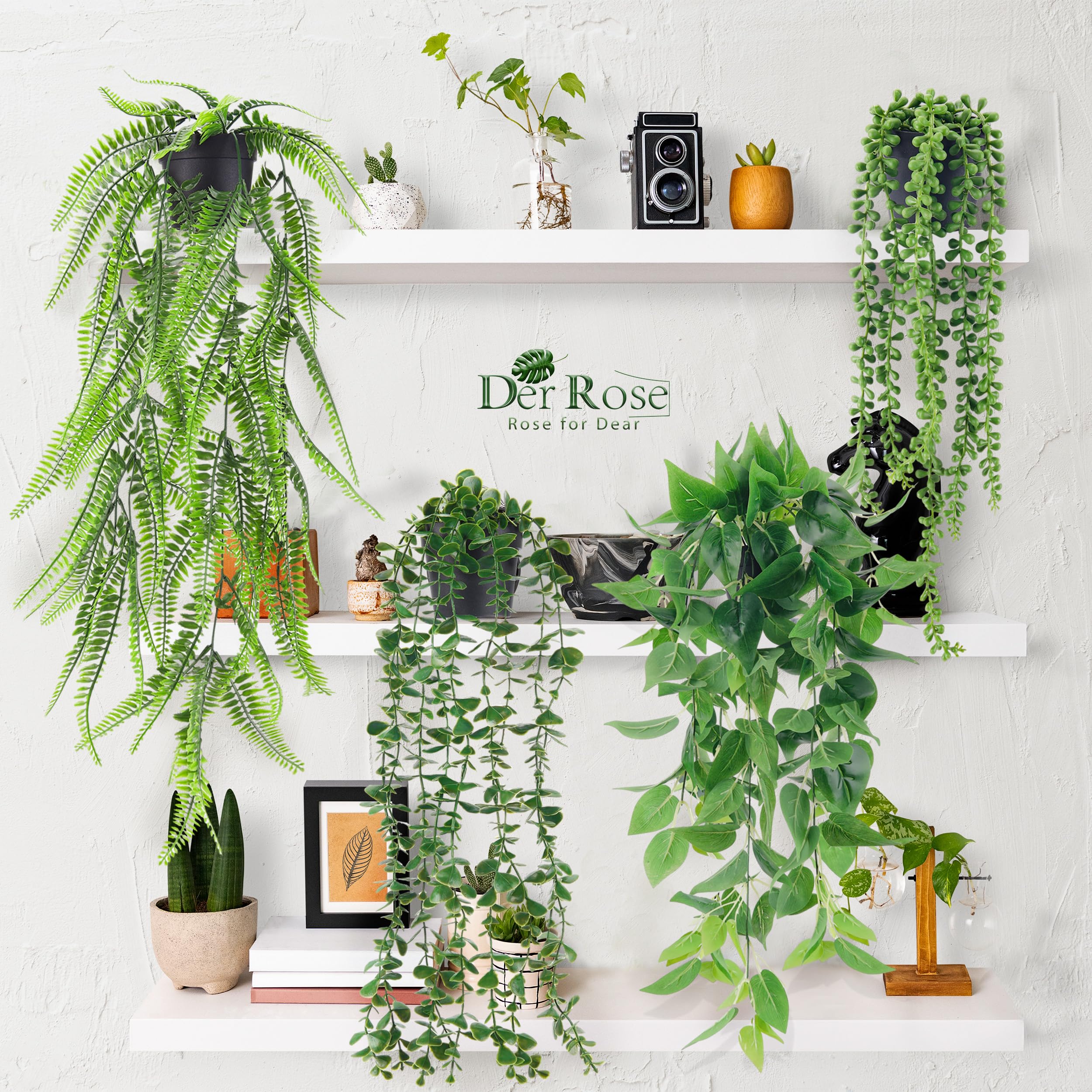 Bring Grün in dein Zuhause - ganz ohne Gießen! Dieses 6-teilige Set mit künstlichen Hängepflanzen ist einfach perfekt für alle, die keinen grünen Daumen haben aber trotzdem nicht auf schöne Pflanzen verzichten wollen. Im Set dabei: Eukalyptusblätter, Perlenketten, Boston Farn und Mandala-Ranken - alles in schwarzen Töpfen und mit Längen von 51 cm bis 80 cm. Sie sehen so echt aus, mit detailreichen Blattadern und lebendigen Farben, dass deine Gäste sicher zweimal hinschauen werden! Aus hochwertigem, flexiblem Kunststoff gefertigt, sind sie absolut ungiftig und haustiersicher. Perfekt fürs Bücherregal, als Boho-Wanddeko oder um jedem Raum mehr Gemütlichkeit zu verleihen. Kleiner Tipp: Nach dem Auspacken einfach die Blätter etwas in Form zupfen - schon entfalten sie ihre volle Pracht!