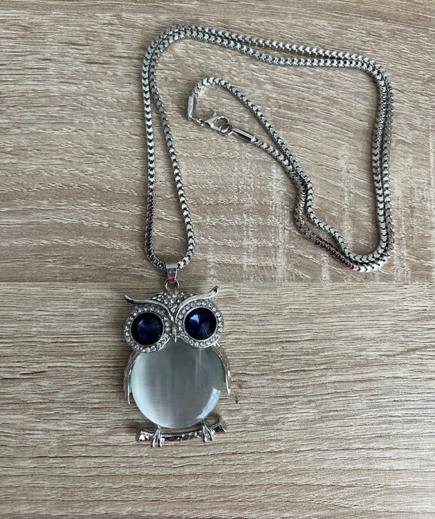 Oh wie süß! Diese Eulen-Kette ist einfach nur niedlich - perfekt für kleine Tierfreunde und Eulen-Liebhaber. \\n\\nDer Eulen-Anhänger ist aus Metall und silberfarben - sieht aus wie echt! Ca. 4 cm groß, also nicht zu klein, aber auch nicht zu groß. \\n\\nDie Kette selbst ist aus Kunstleder, 46 cm lang und verstellbar. Passt also für die meisten Kinder. Und mit Karabinerverschluss - super easy an- und abzulegen. \\n\\nAber Achtung: Nur für Kinder ab 3 Jahren! Enthält Kleinteile, die verschluckt werden könnten. Also bitte nicht für kleinere Kinder kaufen. \\n\\nPerfekt für: \\n• Geburtstagsgeschenke \\n• Weihnachtsgeschenke \\n• Als Belohnung \\n• Oder einfach so \\n\\nDie Eule ist total niedlich gemacht - mit allen Details. Sieht nicht billig aus, wie manch anderer Kinderschmuck. \\n\\nUnd das beste: Sie ist leicht, drückt nicht und kratzt nicht. Dein Kind kann sie den ganzen Tag tragen, ohne dass es stört. \\n\\nKombinierbar mit allem - ob Jeans und T-Shirt oder dem Sonntagskleid. Sieht immer gut aus! \\n\\nWenn dein Kind Tiere mag oder einfach nur schönen Schmuck - diese Kette wird garantiert zum Lieblingsstück! \\n\\nEin wirklich süßes, ungefährliches Accessoire für die Kleinen.