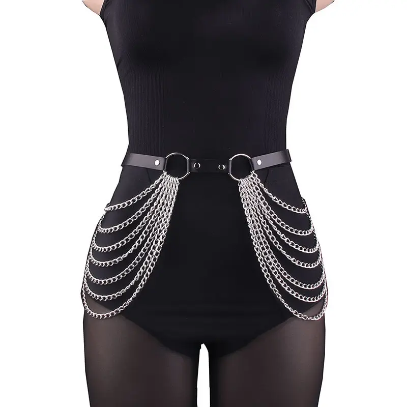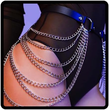Absoluter Hingucker für alle Festival- und Party-Fans! Diese mehrlagige Körperkette im Punk-Style kombiniert schwarzes Leder mit metallischen Kettenelementen. Das einzigartige Design zieht garantiert alle Blicke auf sich! Die Taillenkette ist stufenlos verstellbar und passt daher in jeder Größe. Perfekt für Partys, Clubs, Raves, Cosplay oder Halloween - überall wo du auffallen willst! Kombinierbar mit jedem Outfit, ob zu Kleidern, Tops oder sogar über der Kleidung. Die hochwertige Verarbeitung sorgt dafür, dass sich die Ketten nicht verheddern. Aus Metalllegierung und echtem Leder - farbecht und langlebig. Ein Must-Have für alle, die ihren Style aufpeppen wollen! Auch als Geschenk für modebewusste Freundinnen super geeignet. Zeig deine individuelle Seite und rocke die Nacht! Einfach umhängen und die Komplimente einsammeln!