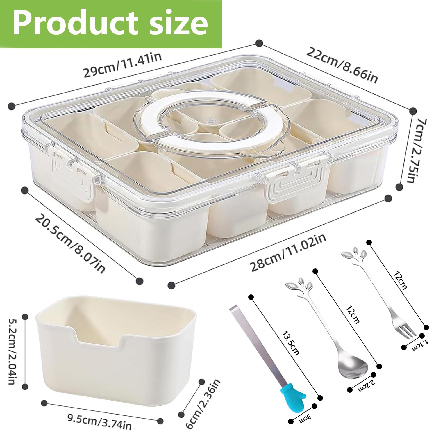 Ordnung und Frische für deine Snacks! Diese praktische Snackbox mit 8 einzelnen Edelstahl-Fächern verhindert Geruchsübertragung und hält alles frisch. Jedes Fach hat seinen eigenen transparenten Deckel. Aus lebensmittelechtem 304 Edelstahl und spülmaschinenfest. Mit praktischem Tragegriff perfekt für Picknicks, Partys oder Büro. Maße: 32x22x9cm - ideal für Früchte, Nüsse, Dips und mehr!