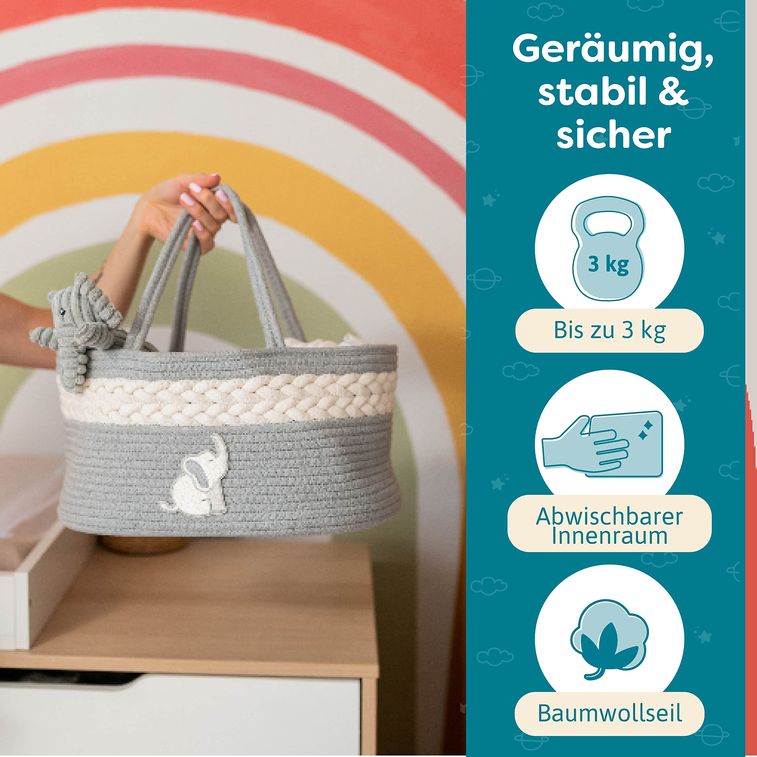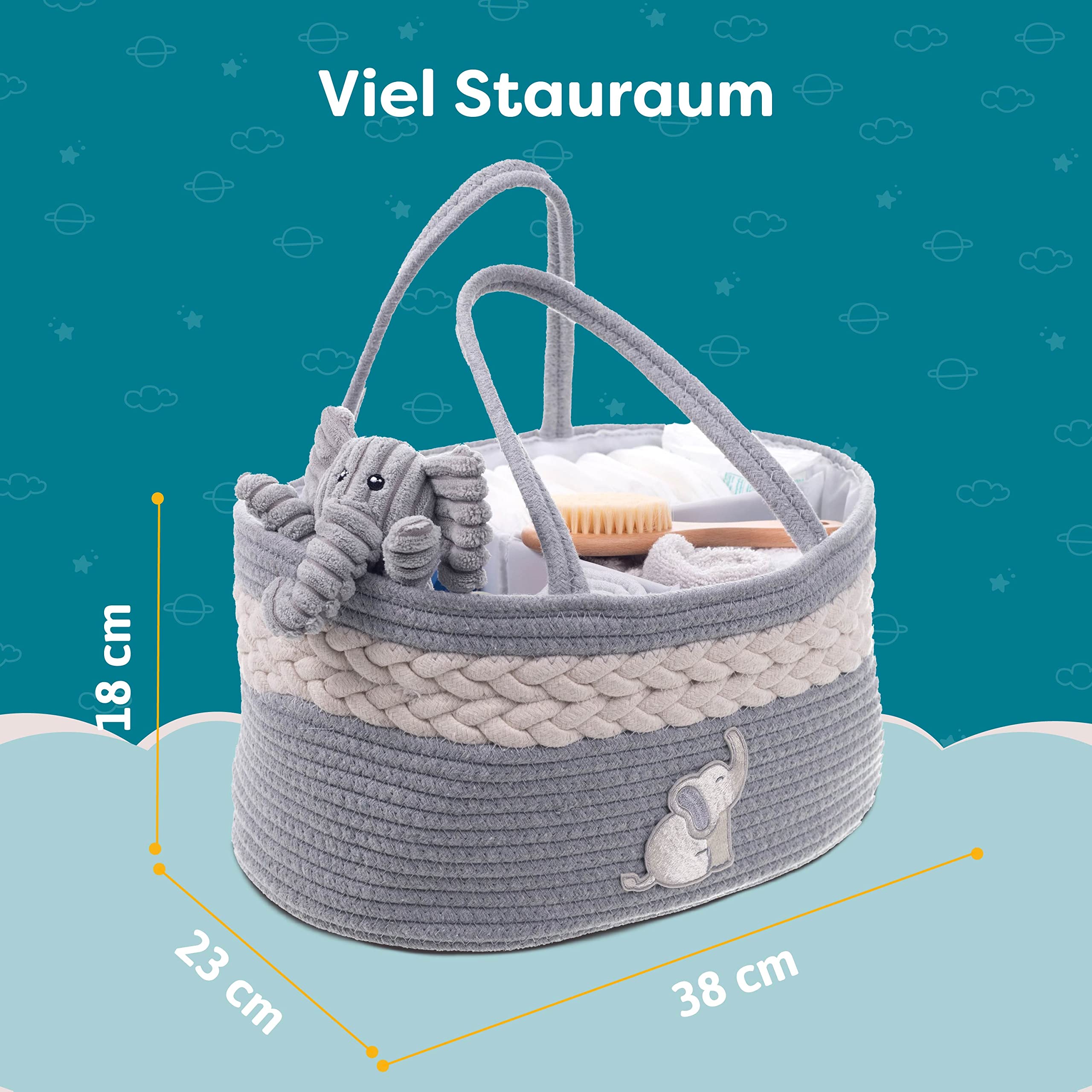 Endlich Ordnung im Baby-Chaos! Dieser Wickeltaschen-Organizer ist der Game-Changer für alle jungen Eltern. Aus weichem Plüsch, super stabil und mit praktischem Tragegriff. Die Trennwände sind herausnehmbar - du bestimmst selbst wie du's einteilst! Maße: 38x25,4x17,8cm - also richtig geräumig für Windeln, Feuchttücher, Cremes, Wechselkleidung... einfach alles was so anfällt. Das creme-farbene Design ist schick und passt in jedes Kinderzimmer. Sieht nicht nur gut aus, sondern macht das Wickeln auch viel entspannter. Alles griffbereit, kein Suchen mehr! Und als Geschenk zur Babyparty? Perfekt! Zeigt dass du an die praktischen Dinge denkst. Die Eltern werden's dir danken! Egal ob im Wohnzimmer, Auto oder Kinderzimmer - dieser Organizer ist in jeder Lebensphase praktisch. Einfach unverzichtbar für organisiertes Eltern-Glück!