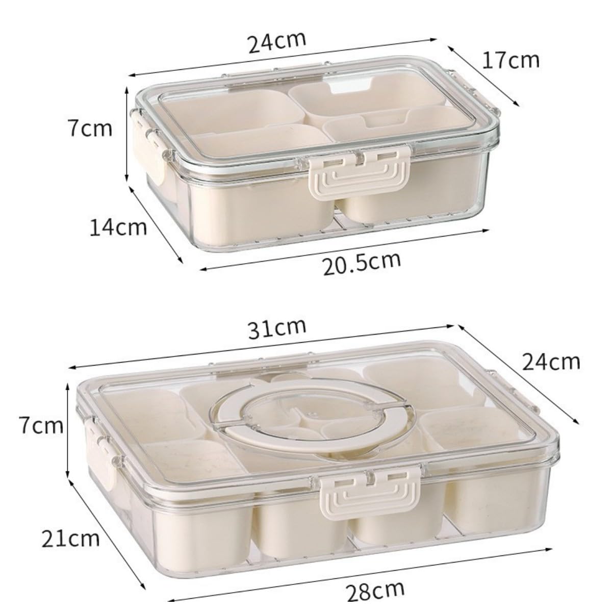 Diese Snackboxen sind super praktisch für unterwegs! Im Set sind zwei verschiedene Boxen dabei: eine runde mit 5 Fächern und eine eckige mit 4 Fächern. Perfekt für Snacks wie Nüsse, Obst, Gemüse oder Kekse. Aus hochwertigem PET-Material - robust und mit gutem Verschluss. Der transparente Deckel schützt vor Staub und Insekten, und du siehst sofort, was drin ist. Ideal für Picknicks, Ausflüge oder einfach für zu Hause. Einfach die verschiedenen Snacks aufteilen und genießen. Macht auch Ordnung in der Vorratskammer. Vielseitig einsetzbar und immer griffbereit - so macht Snacken richtig Spaß!