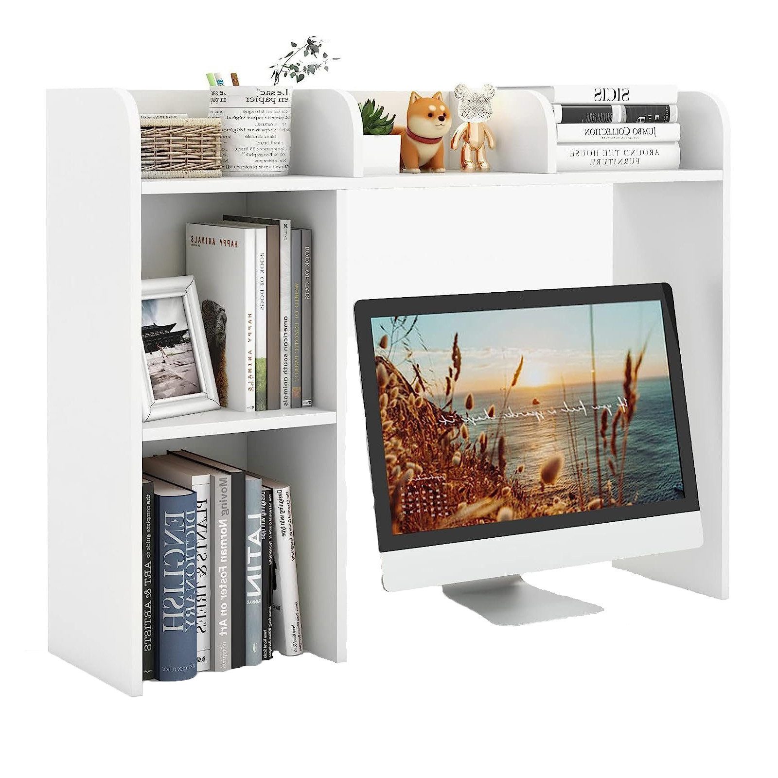 Endlich Ordnung auf dem Schreibtisch! Dieses coole YBING Regal schafft Platz für alles, was du brauchst. Mit 4 praktischen Ablagen und einem offenen Fach hast du genug Stauraum für Bücher, Ordner, Stifte, Drucker und dekorative Sachen. Das besondere Highlight: Das Metallnetz an der Seite! Da kannst du ganz easy Kopfhörer, Schlüssel, Brillen oder Fotos aufhängen - super praktisch und sieht auch noch stylisch aus. Aus stabiler MDF-Platte und Metall gefertigt, hält das Regal auch schwereren Sachen problemlos stand. Das Anti-Kipp-Kit sorgt für zusätzliche Stabilität. Der Zusammenbau ist total einfach - selbst wenn du nicht so der Handwerker bist, kriegst du das hin! Das Regal passt perfekt in jedes Home-Office, Studentenzimmer oder Kinderzimmer. Du kannst es sogar links oder rechts am Tisch platzieren, je nachdem wie es bei dir besser passt. Schluss mit Chaos auf dem Schreibtisch - hol dir dieses praktische Regal und genieße einen organisierten Arbeitsplatz!