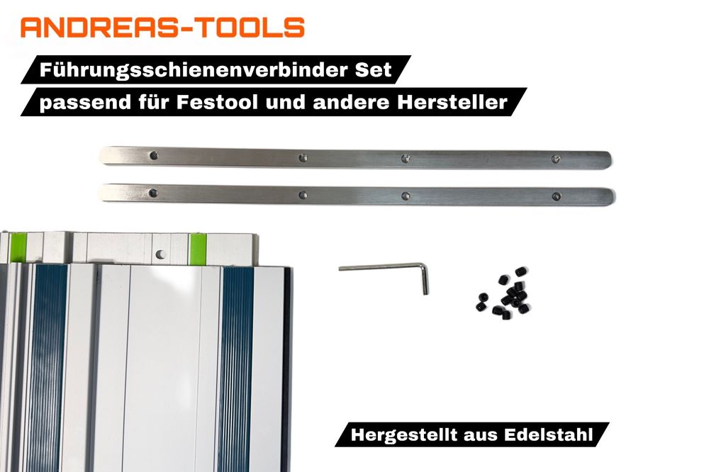 Perfekte Verbindung für deine Schienensäge! Diese Führungsschienenverbinder machen lange, präzise Schnitte zum Kinderspiel. Aus stabiler Stahlkonstruktion - bricht nicht und verformt sich nicht. Die glatte Oberfläche ohne Grate garantiert saubere Verbindungen. Super kompatibel: Passt nicht nur zu Makita, sondern auch zu Festool und Bosch Schienensägen. Einfach zu montieren - im Lieferumfang sind 2 Verbinder, 4 Schrauben und ein Sechskantschlüssel enthalten. Keine zusätzlichen Werkzeuge nötig! Verlängert deine Schiene für Vollschnitte oder Gehrungsschnitte. Macht die Arbeit mit der Schienensäge effizienter und präziser. Wichtig: Die Schienen sind nicht im Lieferumfang enthalten! Auch wichtig: Dies ist ein kompatibles Zubehörteil, nicht von den Markenhersteller gesponsert. Für alle Heimwerker und Profis, die das Maximum aus ihrer Schienensäge herausholen wollen. Einfach bestellen und noch heute perfekte Schnitte machen!