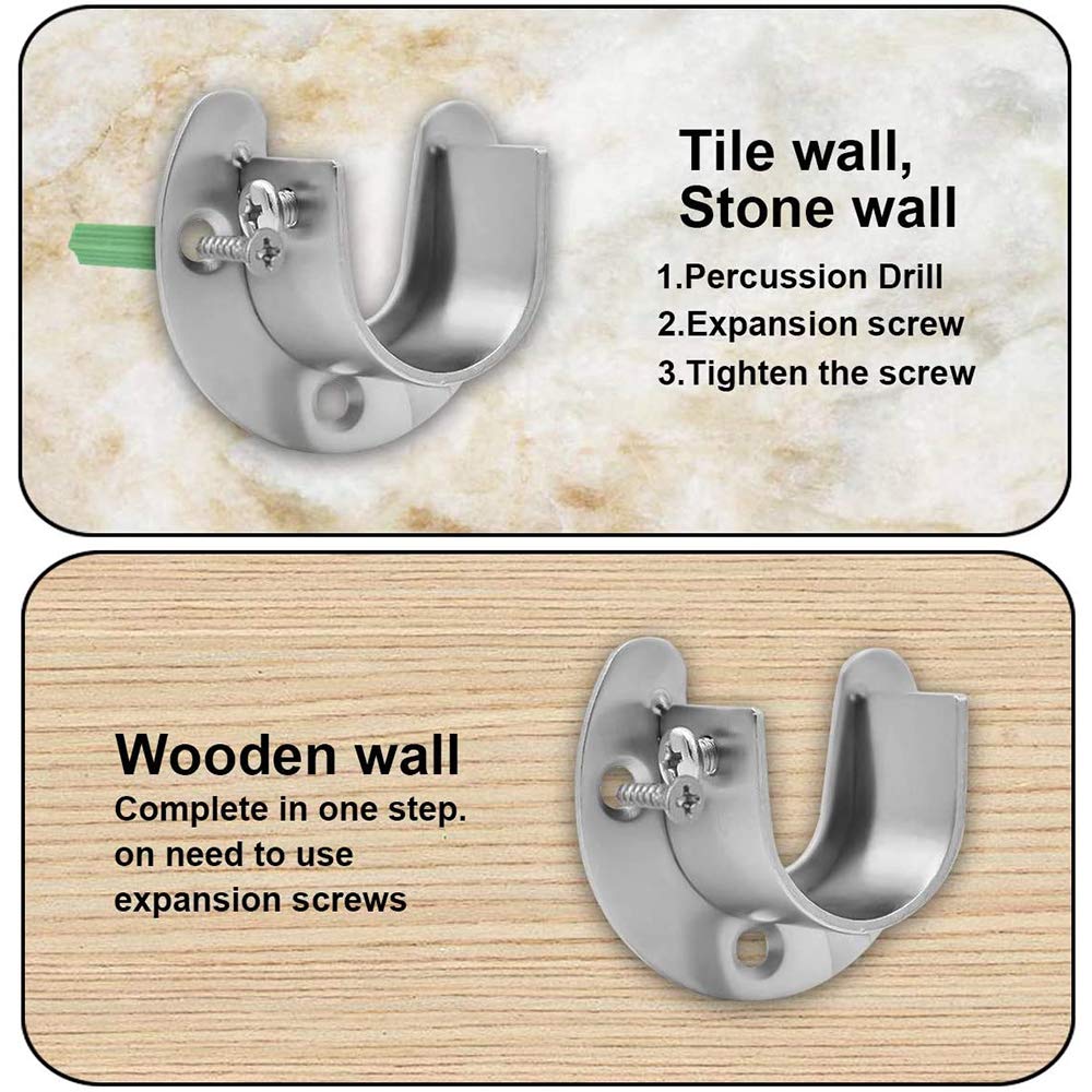 Endlich Ordnung im Schrank! Diese Edelstahl-Halterungen für 25 mm Stangen sind die perfekte Lösung für deine Kleiderstange, Duschvorhang oder Gardinen. Jede Halterung hat drei Befestigungslöcher für maximalen Halt an der Wand und eine seitliche Schraube, die die Stange sicher fixiert - so verrutscht nichts mehr! Das beste: Du bekommst alles was du brauchst - das Paar Halterungen inklusive Dübeln und Schrauben. Einfach auf die gewünschte Höhe anbringen, Stange durchschieben und festziehen. Die 52 x 45 x 22 mm großen Halterungen aus hochwertigem Edelstahl sind rostfrei und super langlebig. Perfekt für den Kleiderschrank, aber auch im Badezimmer für den Duschvorhang oder in der Küche für Vorhänge. Mach deine vier Wände ein bisschen organisierter mit diesen praktischen Halterungen. Die Montage ist wirklich einfach und in wenigen Minuten erledigt. Nie wieder wackelige Stangen oder umgefallene Vorhänge!