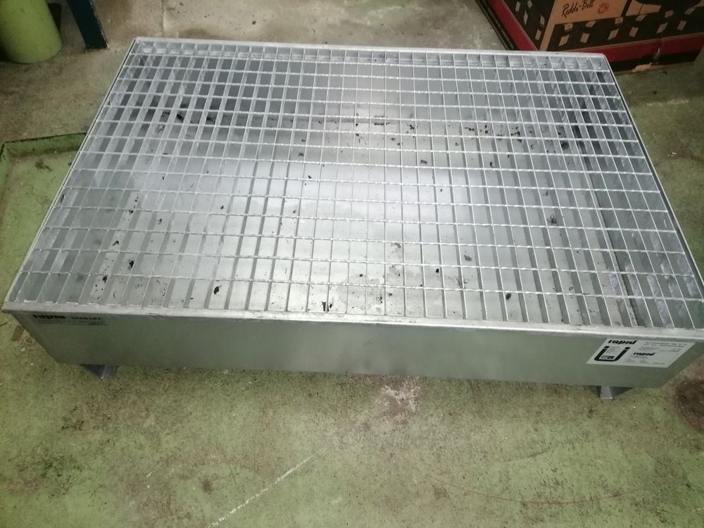 Sicherheit für deine Lagerung! Diese robuste PROMAT Auffangwanne in Enzianblau nimmt zwei 200L Fässer sicher auf. Mit 120x80x36cm Außenmaßen und 215L Auffangvolumen bist du auf der sicheren Seite. Aus 3mm starkem Stahlblech, inklusive verzinktem Gitterrost und Füßen. Zugelassen für entzündbare Flüssigkeiten und gewässergefährdende Stoffe. Die Tragfähigkeit von 1000kg/m² ist mehr als ausreichend. Einfach mit dem Gabelstapler zwischen den Füßen anheben und positionieren. Auch wenn es sich um B-Ware mit kleinen Lackschäden handelt - die Funktion ist einwandfrei! Perfekt für Werkstatt, Labor oder Industrie.