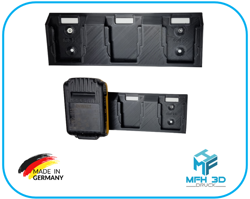 Die Akkus lassen sich einfach entnehmen, ohne Entriegelungsknopf. Mitgeliefertes Befestigungsmaterial inklusive Wandabstandshalter, Schrauben und Dübeln. Einfach montieren und nie wieder nach geladenen Akkus suchen! 'Made in Germany' - Qualität, die man sieht und spürt.