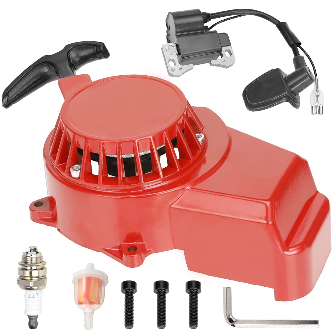 Neue Power für dein Motorrad! Dieses komplette Zündspulen-Set mit Recoil Starter Assembly bringt deine 49cc, 66cc oder 80cc Maschine wieder auf Trab. Die Iridium-Mittelelektrode mit spitzer Masseelektrode sorgt für eine deutlich bessere Zündleistung - das bedeutet einfacheres Starten und smoother Lauf. Das Set enthält alles, was du brauchst: Magnetzünder, CDI-Spule und komplettes Montagezubehör inklusive Schrauben und Muttern. Die Teile aus Stahl und Kunststoff sind extrem robust und langlebig. Mit ca. 47x40x30 mm Größe passt alles perfekt. Die Installation ist super einfach - auch für Heimwerker ohne spezielle Vorkenntnisse. Einfach das alte Teil ausbauen, das neue einbauen und die verbesserte Performance sofort spüren. Bei 360g Gesamtgewicht ist das Set handlich aber wertig. Wichtig: Vor dem Kauf bitte mit deinem Originalteil vergleichen!