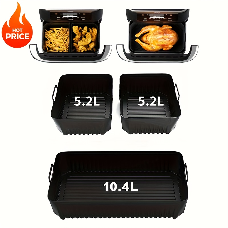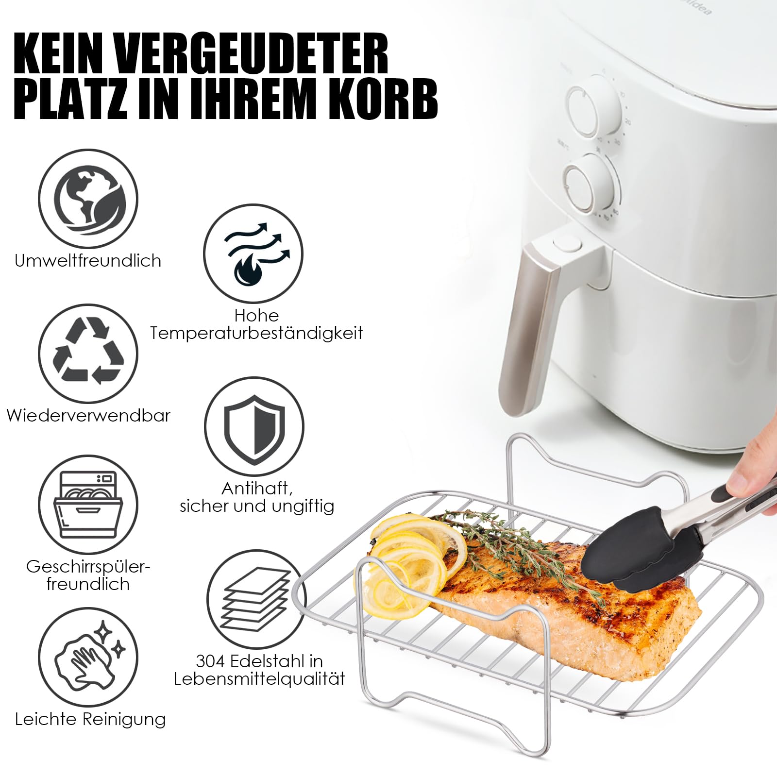 Geniale Lösung für deine Heißluftfritteuse! Diese Magnet-Schnallen von Gosknor halten Backpapier und Einsätze sicher an ihrem Platz. Im Set: 2 Silikon-Gurte und 4 starke Magnete - reicht für mehrere Airfryer! Das Silikon ist hitzebeständig, die Magnete super stark - da rutscht nichts mehr! Die Gurte sind etwa 11,7cm lang, passen also für die meisten Airfryer-Modelle. Anwendung? Simpel: Backpapier in den Korb legen, mit den Magnet-Schnallen fixieren - und schon kann nichts mehr verrutschen oder den Luftstrom blockieren. So gelingt alles gleichmäßig und du musst nicht ständig nachjustieren. Super praktisch für Muffins, Gemüse oder kleine Snacks! Die Schnallen sind wiederverwendbar und leicht zu reinigen. Einfach ein cleveres Küchen-Helferlein, das das Airfryen noch einfacher macht. Probier's aus - du wirst's lieben!