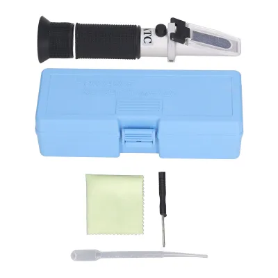 Professionell Alkohol messen! Dieses Refraktometer misst präzise von 0-80% Alkoholgehalt. Mit automatischer Temperaturkompensation (ATC) 0-30°C - immer genaue Werte. Aus Aluminium - robust und langlebig. Einfache Bedienung: 2-3 Tropfen aufs Prisma, durchschauen und ablesen. Mit Schraubendreher, Pipette und Aufbewahrungskoffer. Perfekt für Wein, Bier, Schnaps oder Frostschutzmittel. Scharfe Trennlinie - leicht abzulesen. Einstellbares Okular für scharfe Sicht. Ein Muss für jeden Hobby-Brauer oder Winzer. Einfach kalibrieren und loslegen - professionelle Ergebnisse garantiert!