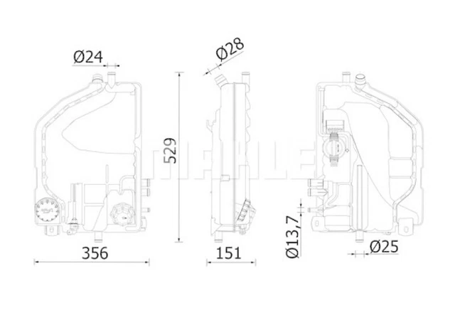 Komplett mit Kühlmittelsensor, aber ohne Deckel - den musst du vom alten Behälter übernehmen. Aus stabilem Kunststoff, der die Hitze und den Druck problemlos aushält. Einfach den alten Behälter ausbauen, neuen rein und alle Schläuche wieder anschließen.
