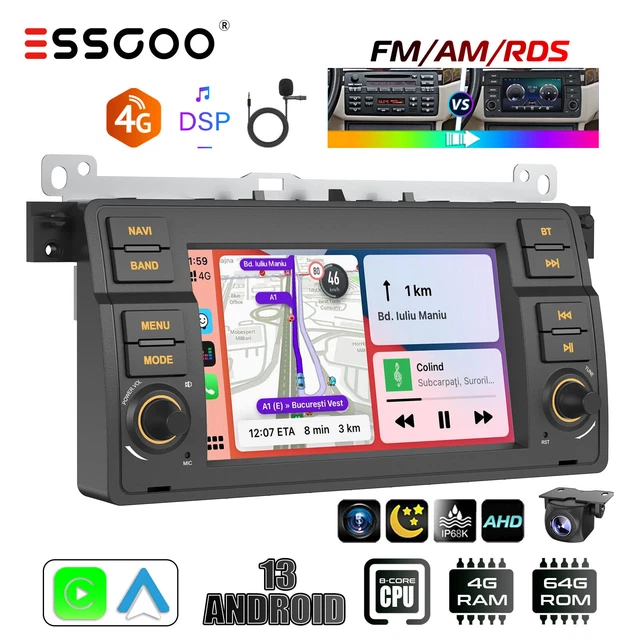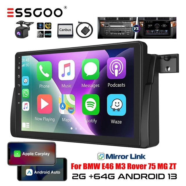 Modernisiere deinen BMW 3er E46 (1999-2005) mit diesem High-Tech Android 13 Autoradio! Der 9 Zoll kapazitive Touchscreen mit 1024x600 Auflösung sieht nicht nur super aus, sondern bietet dir auch alle modernen Funktionen. Mit Wireless Carplay für iPhone und Android Auto über Kabel bist du immer bestens connected - ob für Navigation, Telefonate oder Musik. Die Spiegelungsfunktion (Mirrorlink) synchronisiert deinen Smartphone-Bildschirm mit dem Radio. Integrierter GPS-Empfänger mit Online/Offline Karten sorgt für zuverlässige Navigation, und über WiFi oder Hotspot surfst du im Internet. Bluetooth ermöglicht Freisprechfunktion, Musikstreaming und Sprachsteuerung. Das Radio mit 2GB RAM und 64GB ROM liefert hohe Leistung bei geringem Stromverbrauch. Inklusive AHD Rückfahrkamera für mehr Sicherheit beim Einparken. Lenkradsteuerung, Subwoofer-Audioausgang und multiple USB-Anschlüsse runden das Paket ab. Einfache Plug-and-Play Installation mit mitgelieferten Kabeln - für ein komplett neues Fahrerlebnis in deinem E46!