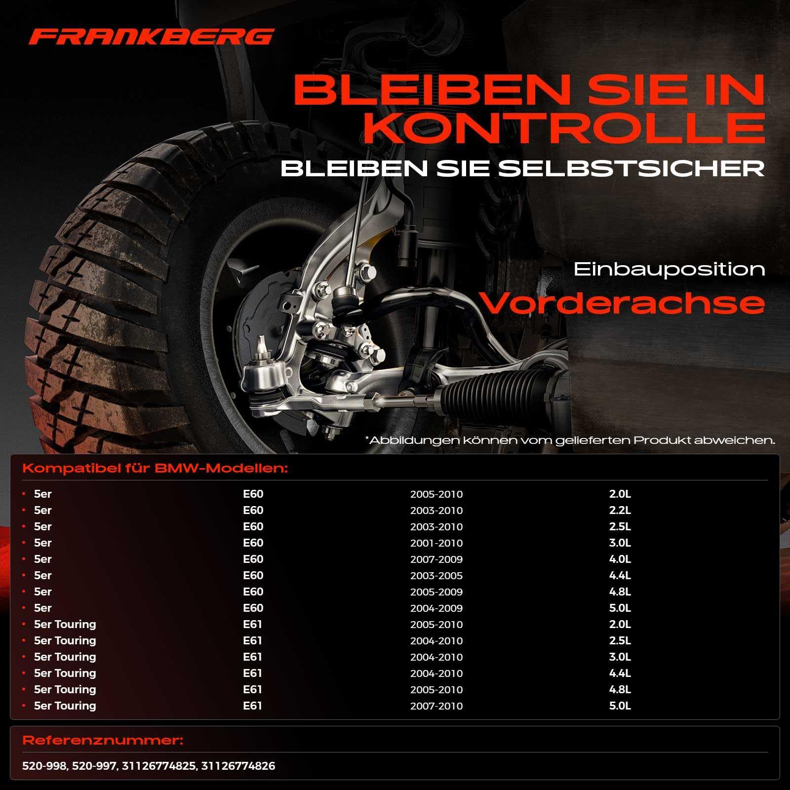 Dein BMW 5er Touring E61 braucht neue Stoßdämpfer? Hier ist die Lösung! Zwei hochwertige Gasdruck-Stoßdämpfer für vorne links und rechts. Passend für praktisch alle E61 Modelle von 2004-2010 - ob 520i, 525d, 530i oder sogar 550i! Austausch für die Originalteile 31316775056 und viele andere Nummern. Wichtig: Nur für Fahrzeuge ohne M-Technik und ohne Sportfahrwerk! Vor dem Kauf unbedingt die Kompatibilität prüfen - am besten mit dem Amazon-Fit-Checker! Einfache Montage als Federbein mit Zuganschlagfeder. Zweirohr-System für optimale Dämpfung. Damit fährt sich dein BMW wieder wie neu - keine wackelige Fahrt mehr, bessere Straßenlage und mehr Komfort! Denk dran: Immer beide Seiten gleichzeitig wechseln für optimale Performance!