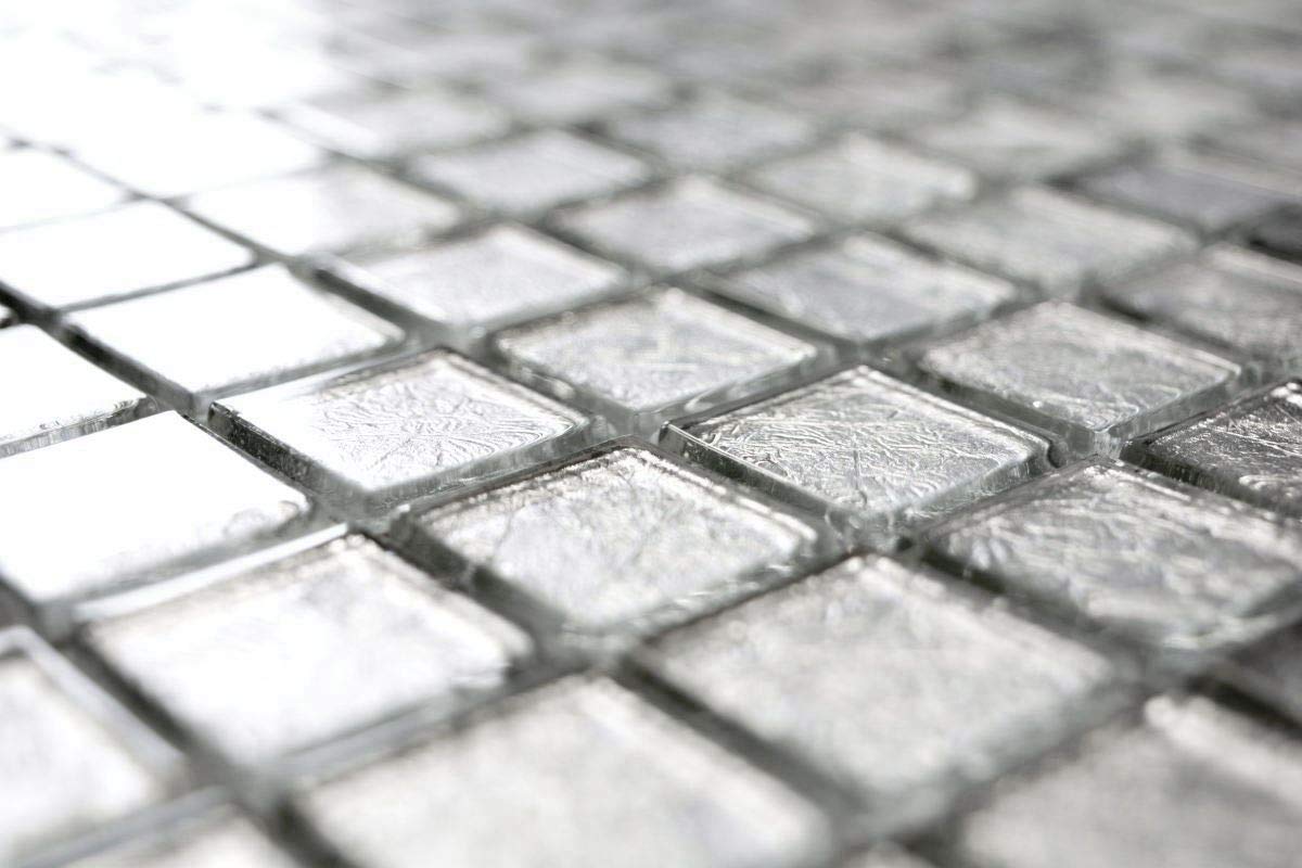 Suchst du was Besonderes für dein Badezimmer oder deine Küche? Diese silberne Glas-Mosaikmatte bringt stylischen Glanz in dein Zuhause! Mit den Maßen 300x300 mm und den einzelnen Steinchen von 15x15x8 mm ist sie perfekt für Wände, Spiegelumrahmungen oder Thekenverkleidungen. Die Matte ist rückseitig netzverklebt, was das Verlegen super einfach macht. Einfach mit dem passenden Kleber auf den vorbereiteten Untergrund bringen und schon verwandelst du jeden Raum in etwas Besonderes. Das silberne Glas reflektiert das Licht wunderschön und sorgt für eine edle Atmosphäre. Perfekt für alle, die ihrem Zuhause einen individuellen Touch verleihen wollen. Tipp: Vor dem Verlegen die Matten auslegen, um den perfekten Look zu planen. Für stark feuchte Bereiche empfehlen wir speziellen Epoxydharz-Kleber.
