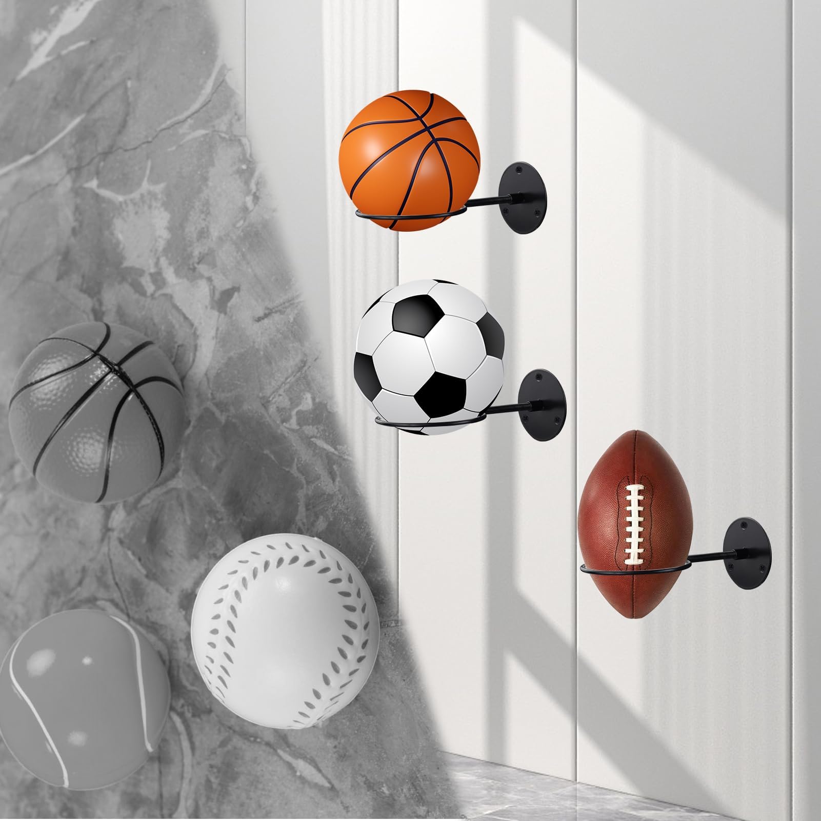 Endlich Ordnung im Sportbereich! Diese 2 Metall-Ballhalterungen sorgen dafür, dass deine Bälle nicht mehr wild in der Ecke rumrollen. Mit 12,5 cm Durchmesser passen Basketball, Fußball, Volleyball und sogar Medizinbälle problemlos rein. Das schwarze Eisen-Design ist schlicht und modern - passt in jedes Zimmer, ob Kinderzimmer, Garage oder Fitness-Studio. Die Montage ist super einfach: Einfach die Halterung zusammenstecken, an der Wand verschrauben und fertig! So sparst du jede Menge Platz und hast deine Bälle immer griffbereit. Besonders praktisch: Die Halterungen sind abnehmbar und platzsparend zu verstauen. Perfekt für Schulen, Vereine oder einfach für zu Hause, wenn die Sportausrüstung überhand nimmt. Nie wieder suchen - immer den perfekten Überblick über dein Sport-Equipment!