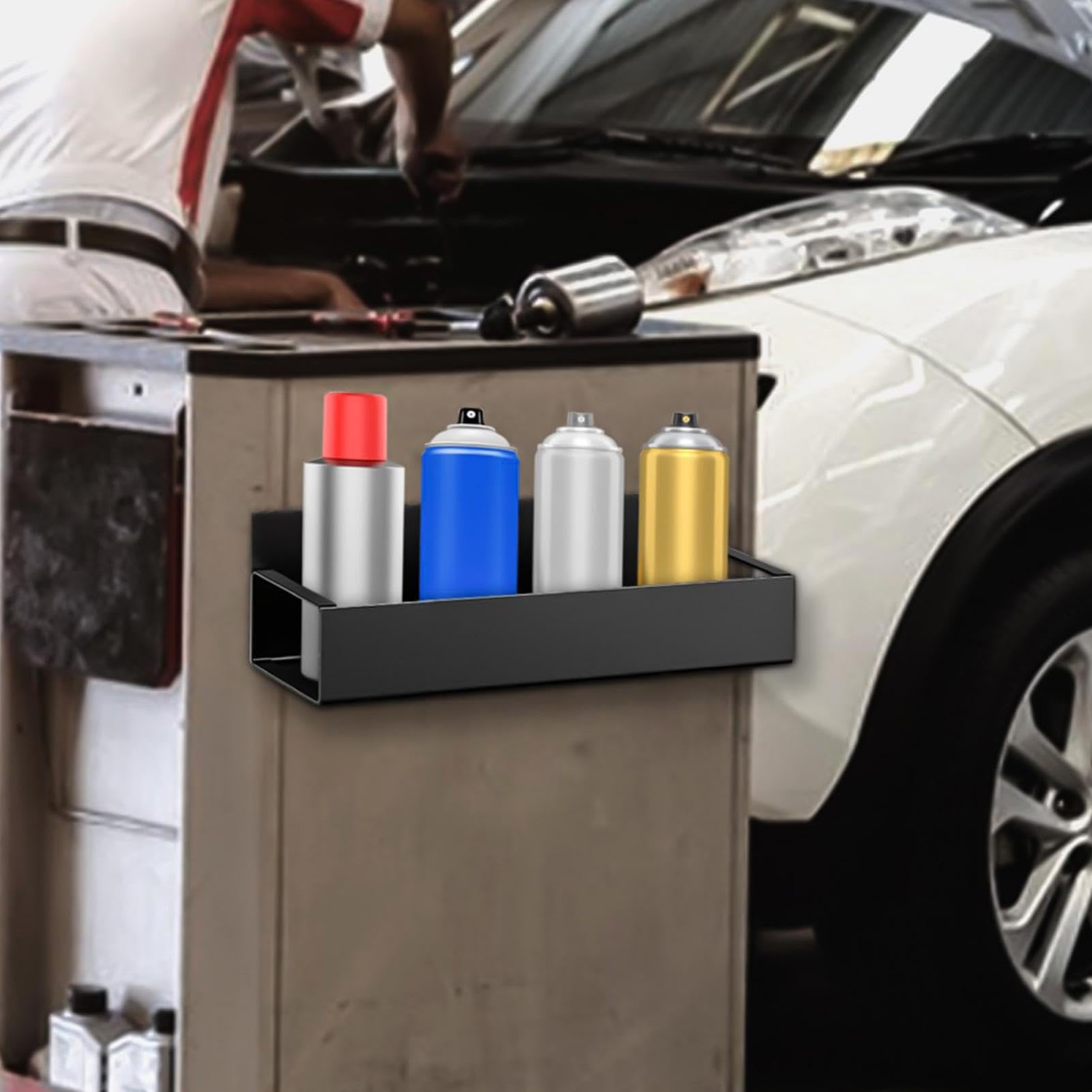 Endlich Ordnung im Chaos! Diese praktische Sprühdosen-Halterung bringt System in deine Werkstatt oder Garage. Stell dir vor: Alle deine Spraydosen sind griffbereit an der Wand - keine Sucherei mehr!\\n\\nDas Set besteht aus zwei Regalen aus stabilem MDF-Material, jedes mit 41,9 x 25,4 cm. Jedes Regal bietet Platz für bis zu 9 Dosen in drei Reihen. Ob Lacke, Reinigungssprays oder Haarspray - alles hat seinen festen Platz.\\n\\nDie Montage ist total einfach: Alle notwendigen Schrauben liegen bei, und du brauchst keine besonderen handwerklichen Skills. Einfach an die Wand schrauben, und schon hast du deine persönliche Spraydosen-Station.\\n\\nPerfekt nicht nur für Hobbyhandwerker, sondern auch für Profis in Werkstätten oder Kfz-Betrieben. Die robuste Konstruktion hält auch bei intensiver Nutzung problemlos stand. Und das Beste: Du siehst sofort, welche Dosen zur Neige gehen und nachgekauft werden müssen.\\n\\nMach deinen Arbeitsplatz effizienter und organisiert - mit diesen praktischen Spraydosen-Haltern wird jede Arbeit zum Kinderspiel!