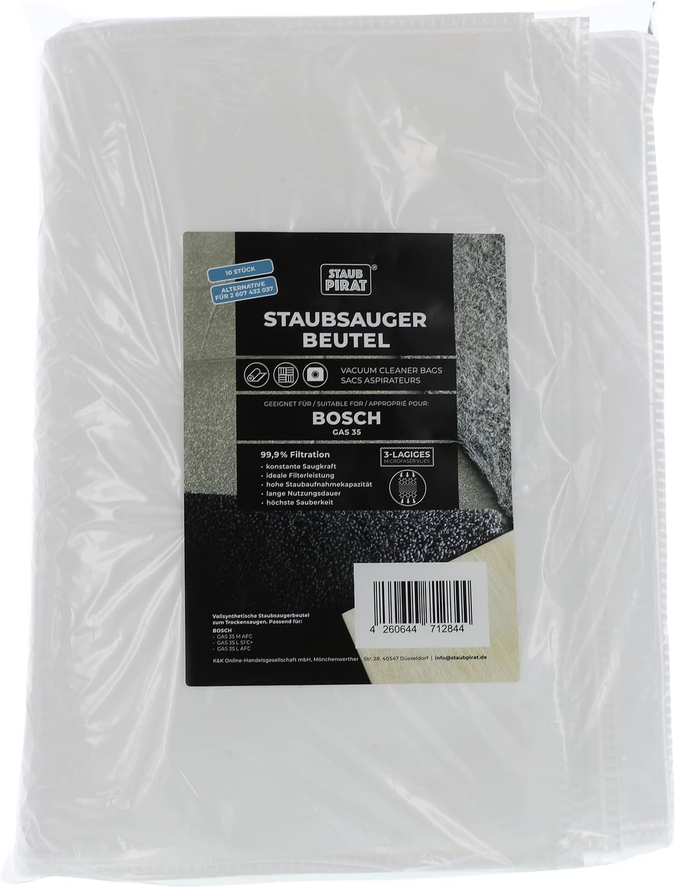 Immer volle Saugkraft für deinen Bosch GAS 35! Diese 6 Ersatzbeutel mit 5-Lagen-Filtersystem fangen selbst feinste Staubpartikel sicher ein. Aus stabilem Karton und hochwertigem Vlies gefertigt, mit selbstdichtender Konstruktion gegen Staubaustritt. Einfacher Wechsel - SFC/AFC-Funktion vorher ausschalten. Mit 6 Beuteln bist du für die nächsten 10-12 Monate bestens versorgt. So bleibt dein Staubsauger immer leistungsstark!