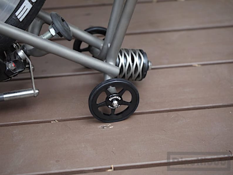 Mach dein Brompton noch praktischer! Diese 64mm breiten Easy Wheels verbessern die Stabilität deines Faltrads enorm und machen das Schieben zum Kinderspiel. Einfach anstelle der originalen kleinen Räder montieren und schon rollt dein Brompton viel smoother über Bodenunebenheiten. Perfekt als Haupträder oder für den Custom Rack - die Wahl liegt bei dir! Mit nur 134g pro Paar super leicht und dennoch robust. Im Lieferumfang sind 2 Rollen und 2 M6 Stahlbolzen enthalten - alles was du für den Einbau brauchst. Ein einfaches Upgrade mit großer Wirkung: Endlich kein Wackeln mehr beim Schieben und dein Brompton steht bombenfest. Ein Muss für alle Brompton-Fans, die ihr Rad noch alltagstauglicher machen wollen!