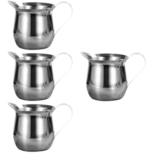 Kaffee-Liebhaber, aufgepasst! Dieses 4-teilige Edelstahl-Set ist genau das Richtige für perfekten Milchschaum und stylische Präsentation. Die kleinen Kännchen haben je 30ml Fassungsvermögen - ideal für Cappuccino, Latte Art oder einfach nur zum Anrichten von Saucen und Dressing.