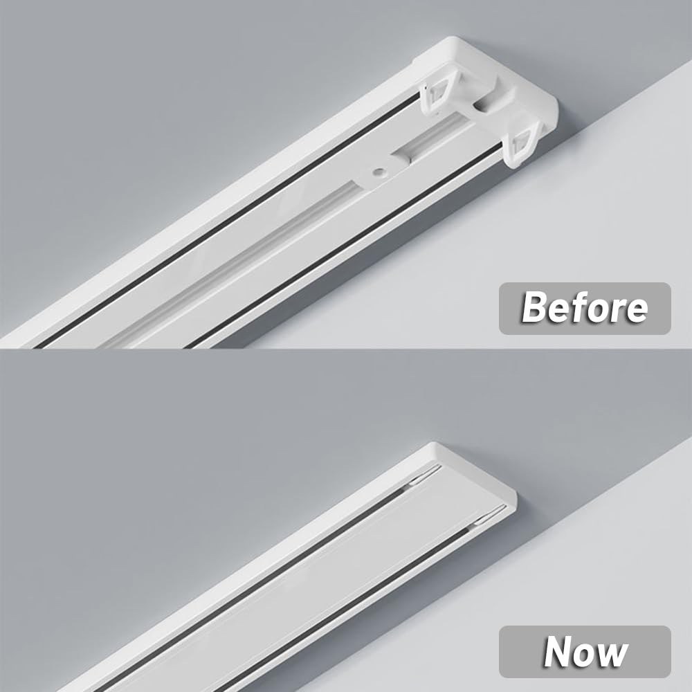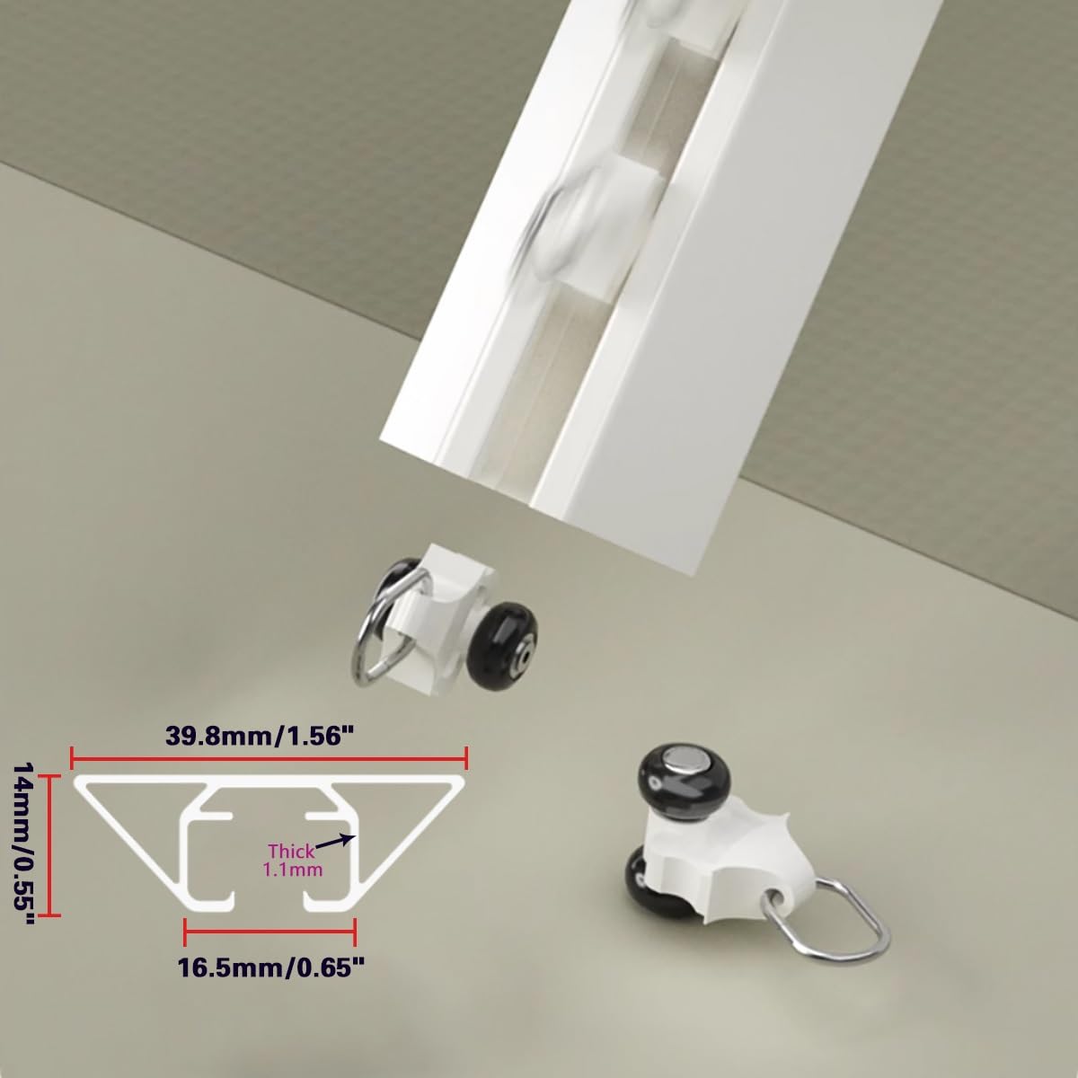 Für Schienen über 1 Meter Länge liefern wir sie in Abschnitten mit nahtlosen Verbindern - easy zu transportieren und fest verbunden. Passt super als Raumteiler für Wohnzimmer, Badezimmer, Schränke oder über Türen und Fenstern.