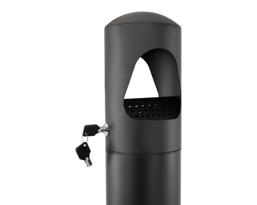Die innere Aschenbox ist abschließbar und kann einfach mit dem mitgelieferten Schlüssel entnommen und gereinigt werden. So bleibt alles hygienisch und du musst nicht lange putzen. Mit nur 2,5kg Gewicht ist der Aschenbecher leicht zu bewegen, aber dennoch stabil genug für den Outdoor-Einsatz.