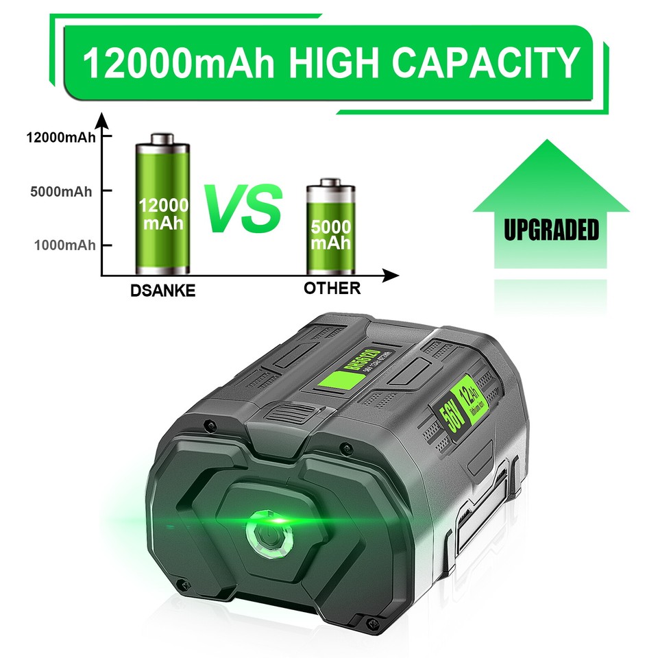 Achtung, nicht kompatibel mit Nexus Portable Power Station! Aber für alle anderen EGO 56V Gartengeräte ist dieser Akku perfekt. 12Ah Kapazität, 56V Spannung, 672Wh Leistung - damit haste lange Power. Mit praktischer LED-Ladestandsanzeige, siehst also immer wie voll der Akku noch ist. Ersetzt BA2800, BA2800T, BA1400 und viele mehr. Kompatibel mit LB6504, LB5804, SNT2400, CS1800, HTA2000 und anderen 56V-Modellen. Gibts als Einzelstück oder im 2er-Pack - je nachdem wie viel Power du brauchst. Einfach einsetzen und loslegen!