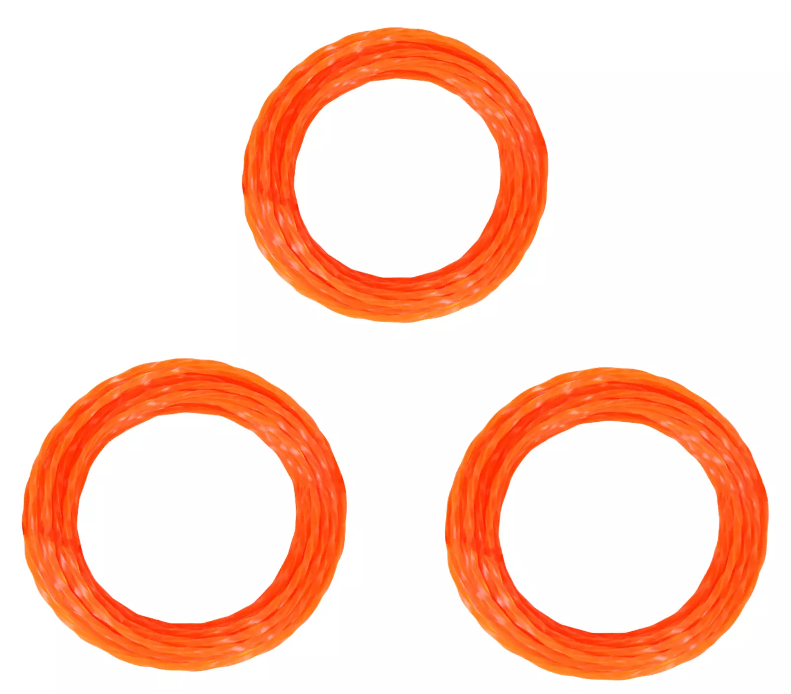 Perfekter Ersatz für deinen EGO-Trimmer! Diese 3 gedrehten Nylon-Schnüre in Orange sind genau das Richtige für deinen Power+ Trimmer. Mit 2,4mm Durchmesser und 4,27m Länge pro Rolle. Die lebhafte orange Farbe sorgt für gute Sichtbarkeit beim Arbeiten. Passt perfekt für EGO ST1500, ST1500-S, ST1500F und viele andere Modelle. Einfach zu wechseln und sofort einsatzbereit. Mit dieser Qualitäts-Schnur trimmt dein Rasen wieder wie neu!