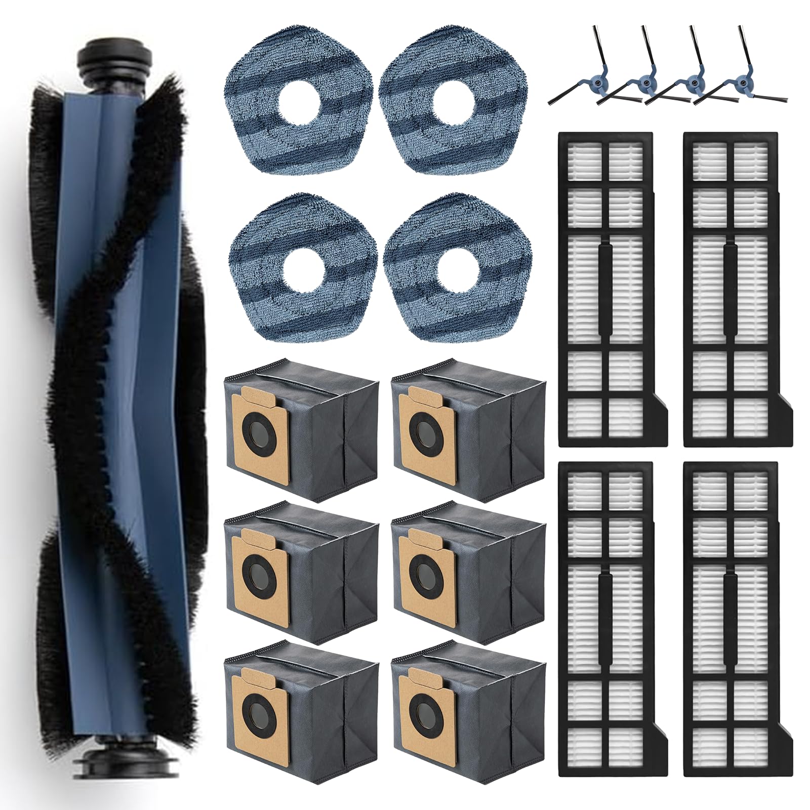 Perfekt für deinen Eufy X10 Pro Omni! Dieses 21-teilige Set hat alles, was dein Saugroboter braucht: 1 Rollenbürste, 4 Seitenbürsten, 4 Staubbeutel mit Deo-Funktion, 4 HEPA-Filter, 6 Wischtücher, plus Reinigungsbürste und Schraubendreher. Die Hauptbürste mit speziellen Borsten verhindert lästige Haare- und Faden-Verwicklungen - super für Teppiche und Hartböden. Die flexiblen Seitenbürsten kommen auch in die blödesten Ecken und Kanten. Die HEPA-Filter sind richtig effektiv und fangen selbst winzige 0,3 Mikrometer Partikel raus - ideal für Allergiker! Die Staubbeutel haben übrigens Aktivkohle gegen Gerüche und halten länger. Tipp: Bürsten alle 6-12 Monate wechseln, Filter alle 2-3 Monate, Staubbeutel alle 3-4 Wochen. So bleibt dein Roboter immer topfit!