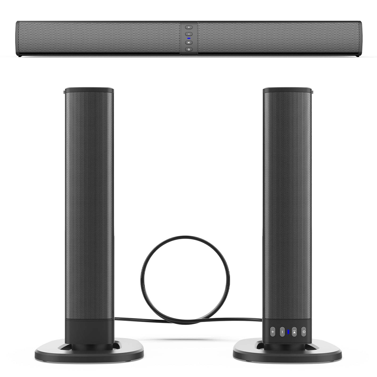 Endlich richtig guter Sound für deinen Fernseher! Die GarageRock Soundbar verwandelt langweiligen TV-Sound in ein packendes Kino-Erlebnis. Das coole Feature: Du kannst die beiden Lautsprecher entweder zusammen als Soundbar nutzen oder sie separat aufstellen - total flexibel! Mit 90 Watt Power und 4 Treibern hörst du selbst die leisesten Dialoge kristallklar und Actionszenen werden zum echten Erlebnis. Drei EQ-Modi (Filme, Musik, Nachrichten) sorgen immer für den perfekten Sound. Einfache Installation per HDMI, Optisch, AUX oder Bluetooth 5.3. Kein kompliziertes Gefummel - in wenigen Minuten ist alles ready. Perfekt für Fernseher, PC und Beamer. Tipp: Für optimalen Sound stellst du deine TV-Toneinstellung auf Stereo um. So holst du das Maximum aus deinem Heimkino!