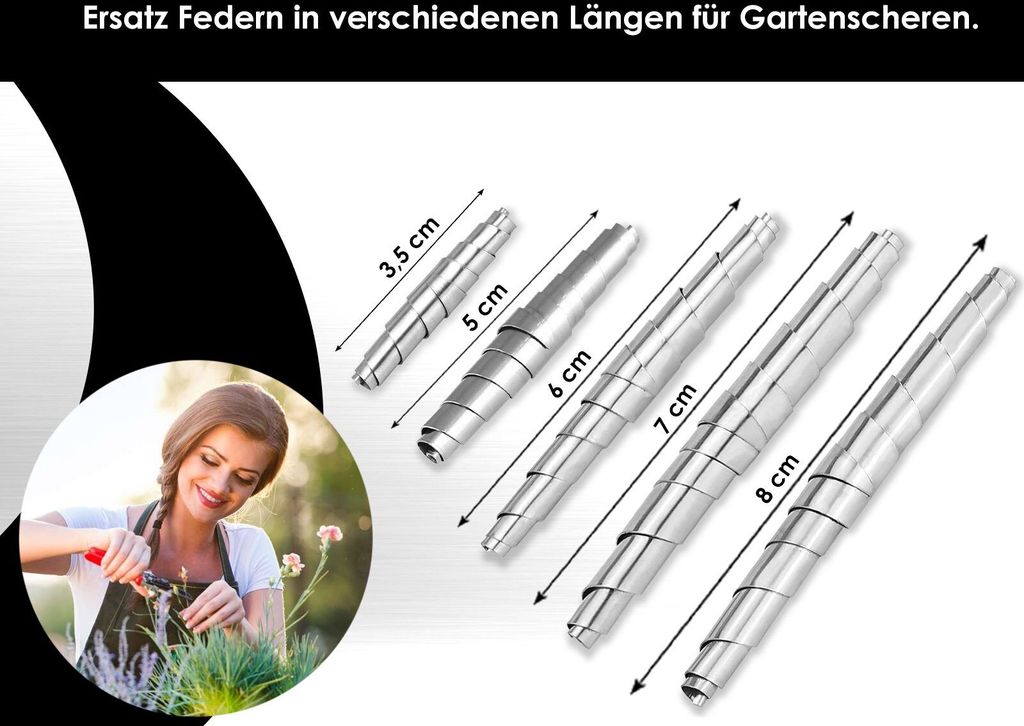 Gärtner, wenn eure Gartenschere schwächelt, sind diese Federn die Lösung! 3 Stück im Set - aus rostfreiem Stahl, also langlebig und korrosionsbeständig. Passen für die meisten Gartenscheren und Astscheren. Einfach zu installieren - keine Spezialwerkzeuge nötig. Die Federn sind flexibel aber stabil - verformen sich nicht leicht. Immer Ersatz parat haben und nie mehr mit lahmer Schere arbeiten müssen. Einfach praktisch!