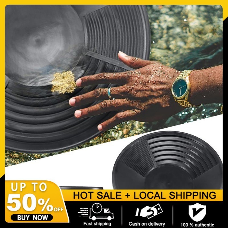 Hey Goldsucher! Diese schwarze Kunststoff-Pfanne macht Goldwaschen zum Kinderspiel. Aus robustem PP-Material rostfrei und chemikalienbeständig - die hält ewig! Mit 38,5cm Durchmesser und nur 300g Gewicht passt sie in jeden Rucksack. Das geniale Design: Vier Rillen an den Seiten und ne flache Rille am Boden (0,25mm tief) sorgen dafür, dass sich das Gold super einfach trennt. Die schwarze Farbe hilft, selbst winzige Goldflocken sofort zu erkennen. Einfach Wasser dazu und schon kann's losgehen - perfekt für Flüsse, Bäche und unwegsames Gelände. Selbst im Wasser schwimmt die Pfanne! Ob du Anfänger oder Profi bist - mit diesem Teil machst du nichts verkehrt. Und kein Stress mit Magneten - die Pfanne stört die nicht. Dein neues Lieblingswerkzeug für die Goldsuche!