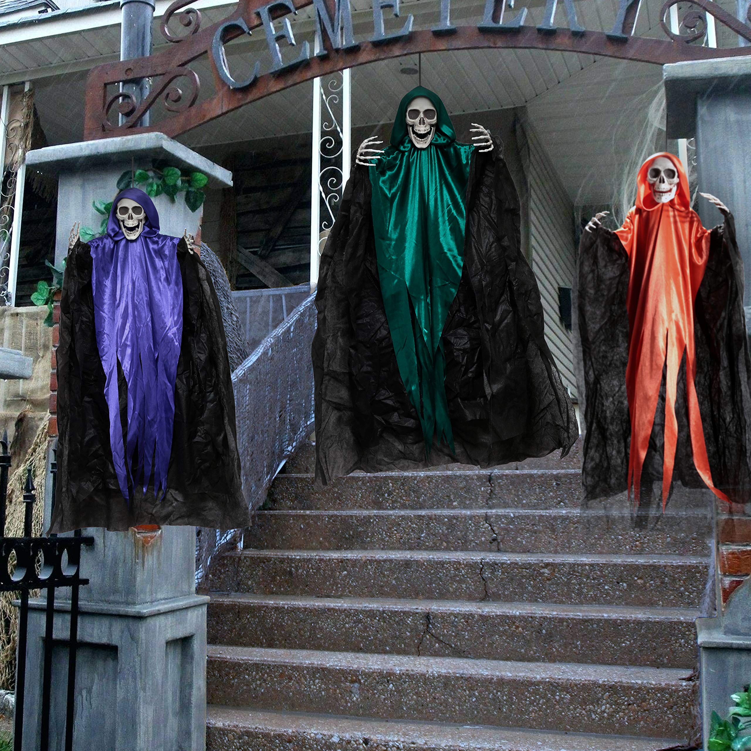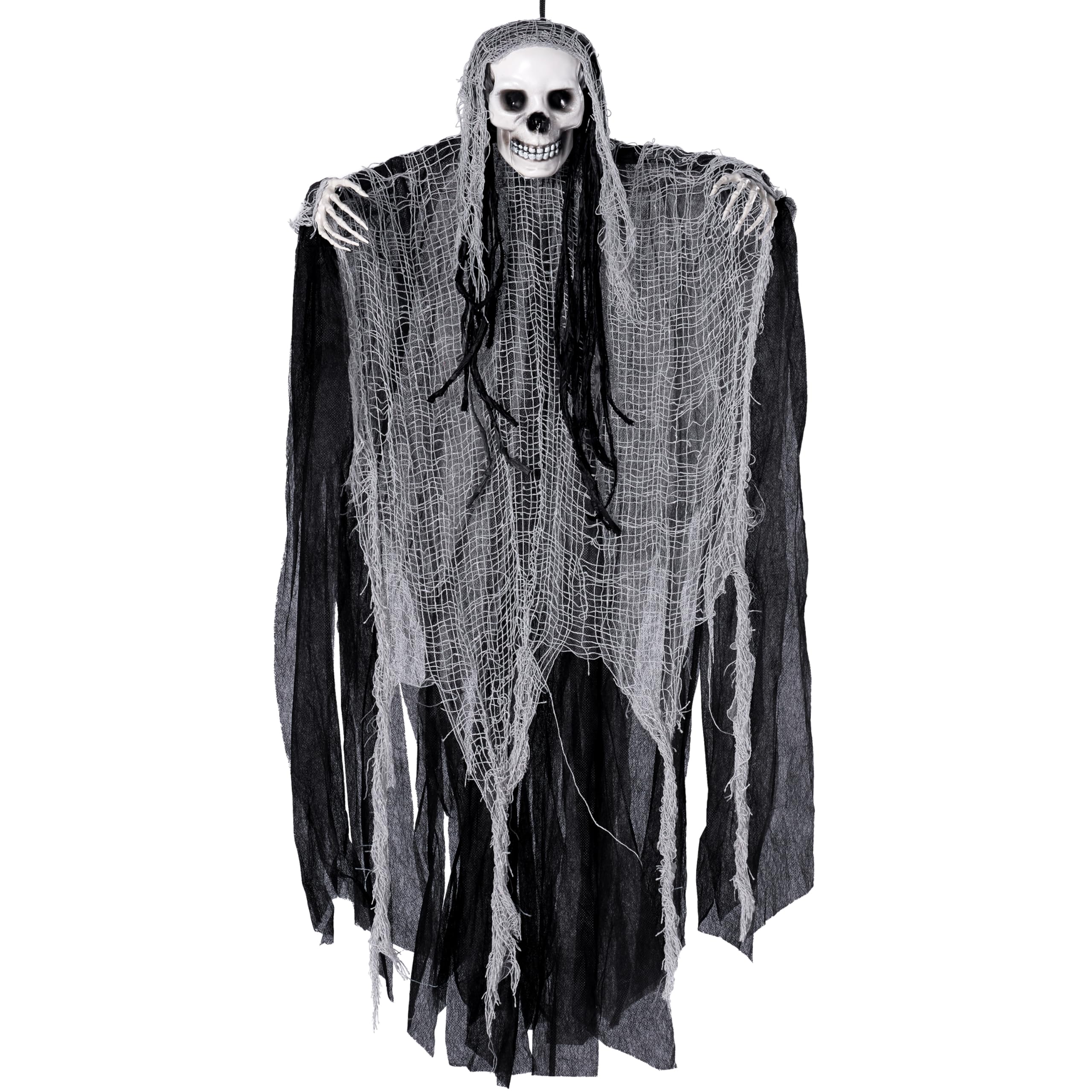 Boooo! Dieser 89 cm große Sensenmann ist der absolute Grusel-Star für dein Halloween! Mit seinem langen, schwarzen Gewand und dem knöchernen Gesicht jagt er allen einen Schauer über den Rücken. Einfach aufhängen - an Bäumen, Türen oder der Veranda - und sofort ist die Gruselatmosphäre da! Das coole Design mit den zerfetzten Gewändern sieht mega authentisch aus. Mach dein Zuhause zur reinsten Horror-Bude! Die Qualität ist top: Hält drinnen und draußen problemlos stand. Perfekt für Halloween-Partys, 'Trick or Treat' oder einfach um die Nachbarn zu erschrecken. Stell ihn in eine dunkle Ecke und wart ab, wer sich als nächstes erschrickt! Mit diesem Sensenmann wird dein Halloween unvergesslich. Einfach die Schnur nehmen, aufhängen und die Gruselsaison kann beginnen! Deine Halloween-Deko wird zum Gesprächsthema in der ganzen Nachbarschaft.