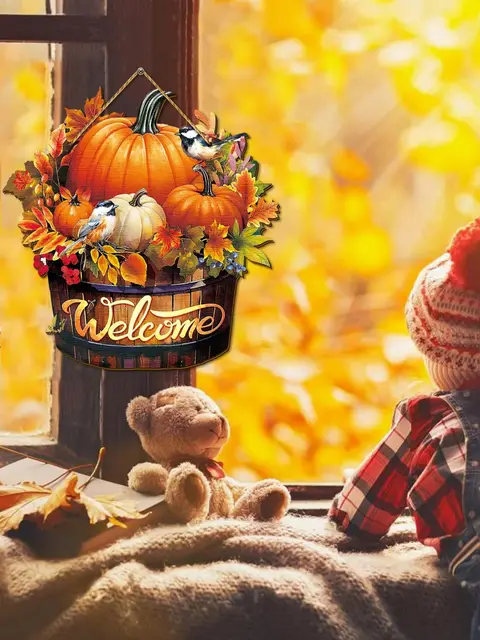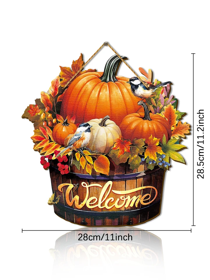 Bring herbstliche Gemütlichkeit an deine Haustür! Dieses niedliche Willkommensschild mit dem Motiv 'Happy Harvest' sorgt für perfekte Herbststimmung. Das mehrteilige Design zeigt einen charmanten Kürbiswagen mit Vogelscheuche, umgeben von bunten Ahornblättern - einfach urig und einladend! Hergestellt aus 5mm starkem Pappelholz, das nicht nur gut aussieht, sondern auch lange hält. Die beiden Paneele messen 29x10,8cm und 29x14,6cm und sind bereits mit Aufhängeschnur versehen - einfach auspacken und aufhängen! Perfekt für Haustür, Veranda, Wohnzimmer oder als Geschenk für Herbst-Fans. Ob für Thanksgiving, Erntedank oder einfach so - dieses Schild verbreitet sofort diese gemütliche Bauernhaus-Atmosphäre, die wir im Herbst alle lieben. Mach dein Zuhause zur herbstlichen Wohlfühloase!