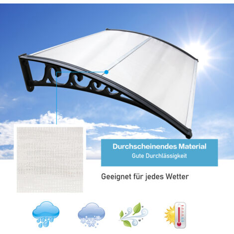 Perfekter Schutz für deine Haustür! Dieses stabile Aluminium-Vordach in Pultform bietet dir zuverlässigen Schutz vor Regen, Sonne und Schnee. Mit einer beeindruckenden Tragkraft von 300kg hält es auch starken Belastungen problemlos stand. Die 2,5mm dicken Polycarbonat-Platten sind extrem widerstandsfähig und halten Temperaturen von -40°C bis 120°C aus - ohne zu vergilben! Besonders praktisch: Die Platten blockieren 99% der schädlichen UV-Strahlen, sorgen aber trotzdem für 90% Lichtdurchlässigkeit. Das gebogene Design und das große Wassertank-System ermöglichen effiziente Entwässerung bei Starkregen. Verfügbar in verschiedenen Breiten von 60-150cm - du findest sicher die passende Größe für deine Tür. Ob bei Sturm, Hagel oder sengender Sonne - dieses Vordach hält stand und schafft eine gemütliche Atmosphäre vor deiner Haustür. Ein echter Mehrwert für jedes Zuhause!