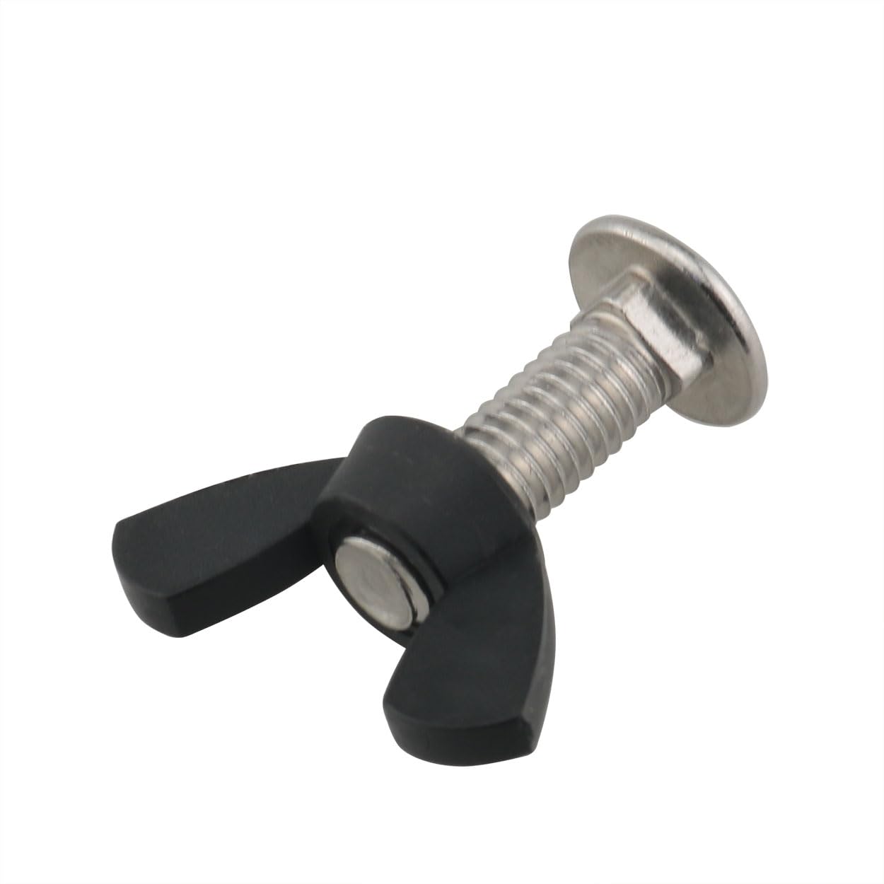 Die Schrauben sind aus rostfreiem Edelstahl - viel stabiler als die originalen Plastikteile. Die Schmetterlingsmuttern kannst du einfach von Hand festziehen, ohne Werkzeug.
