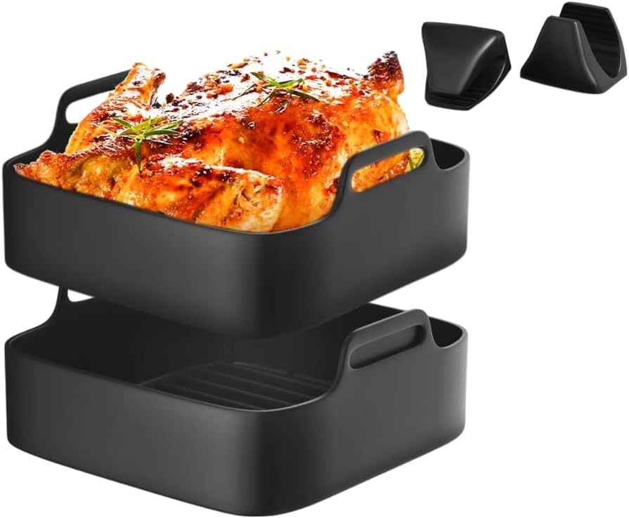 Hey Air Fryer Fans! Diese Silikonformen machen deine Heißluftfritteuse noch vielseitiger - koche mehrere Gerichte gleichzeitig und schone deinen Korb!