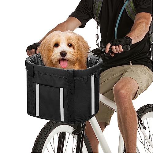 Nimm deinen vierbeinigen Freund mit auf Fahrradtouren! Dieser praktische Lenkerkorb für Hunde bietet deinem kleinen Liebling einen sicheren und bequemen Platz während der Fahrt. Mit Eisenrahmen super stabil, aber trotzdem leicht genug für einfaches Manövrieren. Der Korb ist abnehmbar und zusammenklappbar - perfekt für Transport und Lagerung. Wasserdicht und leicht zu reinigen, einfach mit Wasser abspülen. Der interne Sicherheitsgurt verhindert, dass dein Hund springt. Geeignet für Haustiere bis 7,5 kg Gewicht - also ideal für kleine Hunderassen. Passt auf Mountainbikes und andere Fahrradtypen, solange der Abstand vom Sitzrohr zum Lenker mindestens 45 cm beträgt. So wird jede Radtour zum gemeinsamen Abenteuer, ohne dass dein Hund hinterherlaufen muss. Perfekt für den Weg zur Arbeit oder gemütliche Wochenendausflüge!
