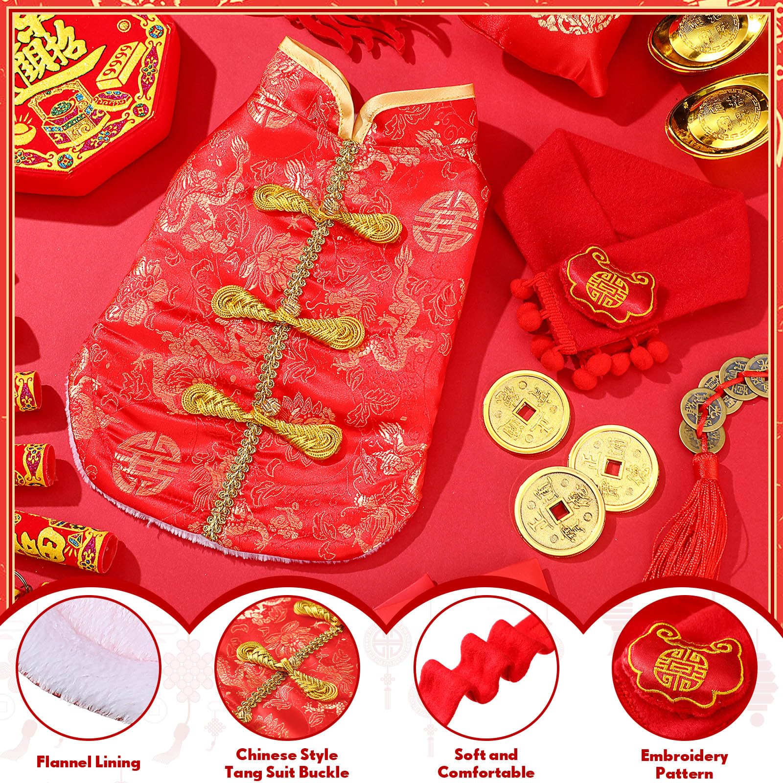 Oh, wie niedlich ist denn dieses chinesische Neujahrskostüm für deinen Hund! Rote Brokat-Weste mit traditionellen Drachenstickereien und weichem Flanell-Innenfutter. Dazu ein kuscheliger Plüsch-Schal. Maße: 35 cm Rückenlänge, 50 cm Brustumfang - perfekt für kleine Hunde wie Teddy, Chihuahua oder Katzen. Mit praktischem Knopfverschluss, easy an- und auszuziehen. Super für Neujahrsfeiern, Frühlingsfeste oder Weihnachten. Dein Vierbeiner wird zum absoluten Star auf jeder Party! Auch ein tolles Geschenk für Tierfreunde. Macht coole Fotos und sorgt für jede Menge Aufmerksamkeit!