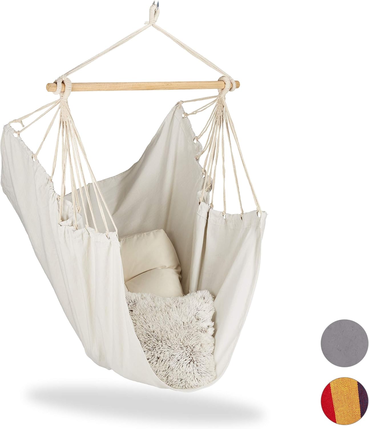• Relaxdays Hängesessel Baumwolle - Deckenschaukel Für Innen & Außen 150kg